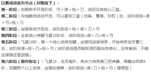 这个是大后期,前中期拉胯,至少8阶出师表和牙,没有几万氪度就不要考虑了,非土豪不推荐。
