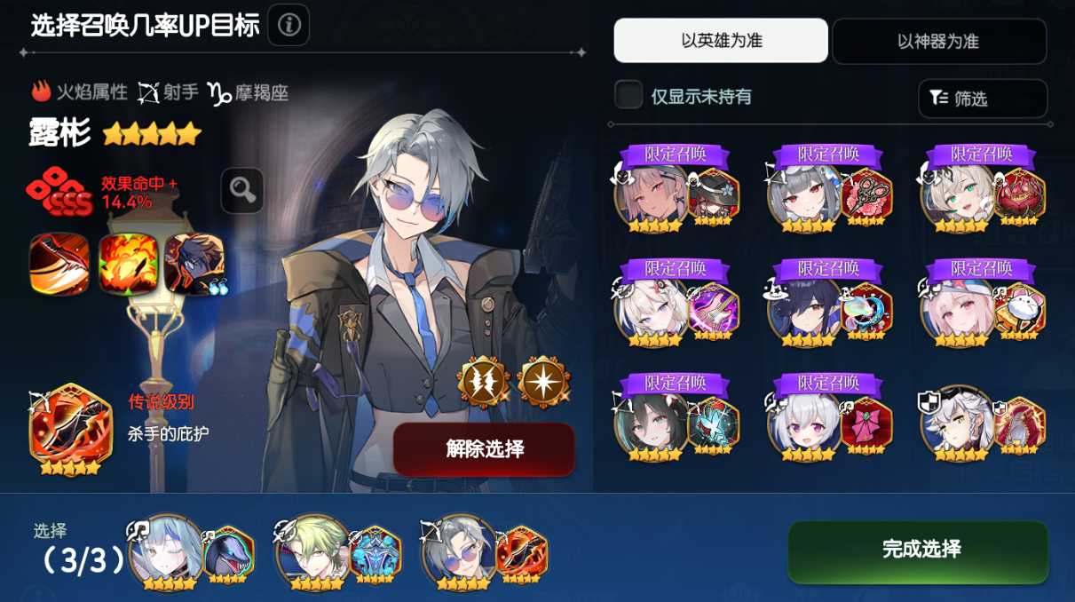 - 在进行1次以上自己所选择的3名英雄组合召唤后,便无法变更召唤几率UP的目标英雄。