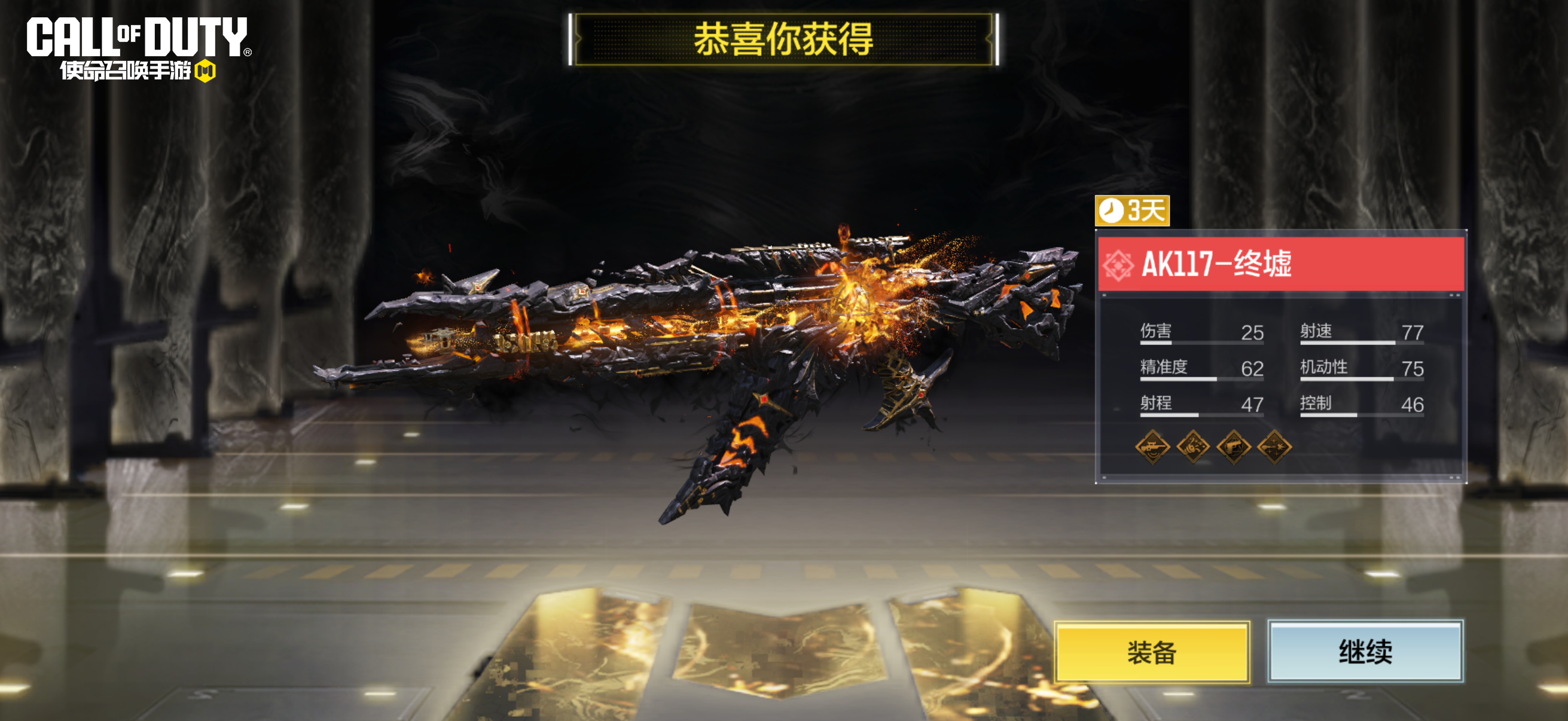 同时,新版本更新后,AK117-终墟将赋予专属的冠军标签。持有AK117-终墟的战士们,在限时内将其神话等级升至满级,也将解锁独一无二的绝版永久成就徽章!战士们千万不要错过!