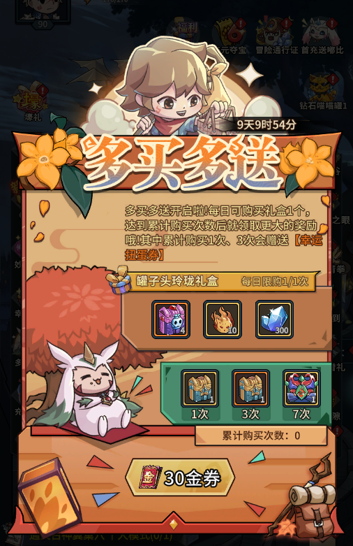 3、多买多送,每日购买罐子头玲珑礼盒,最高可领取黄金技能书礼盒