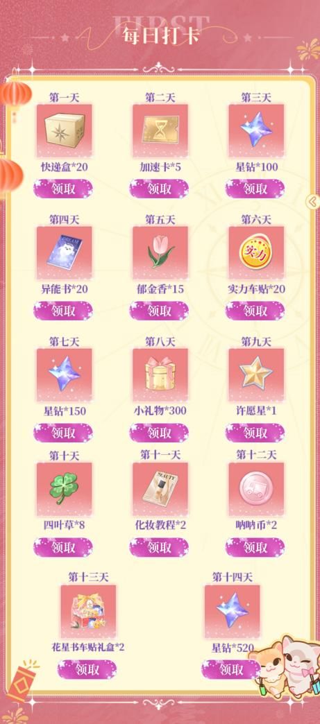 每天打完卡可领一份礼包要记得rua北北的橘毛(这是重点!)
