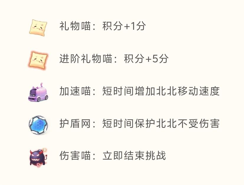 你要帮北北接住从天而降的「礼物喵」,躲开讨厌的「伤害喵」!