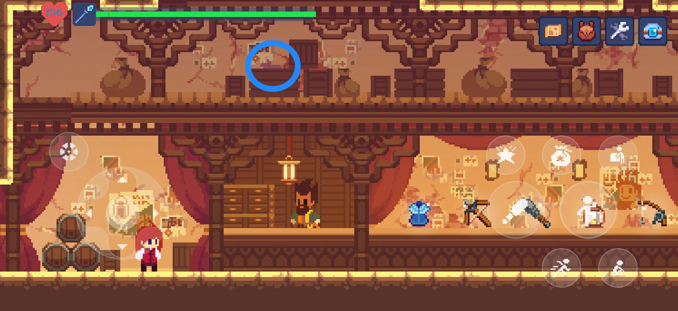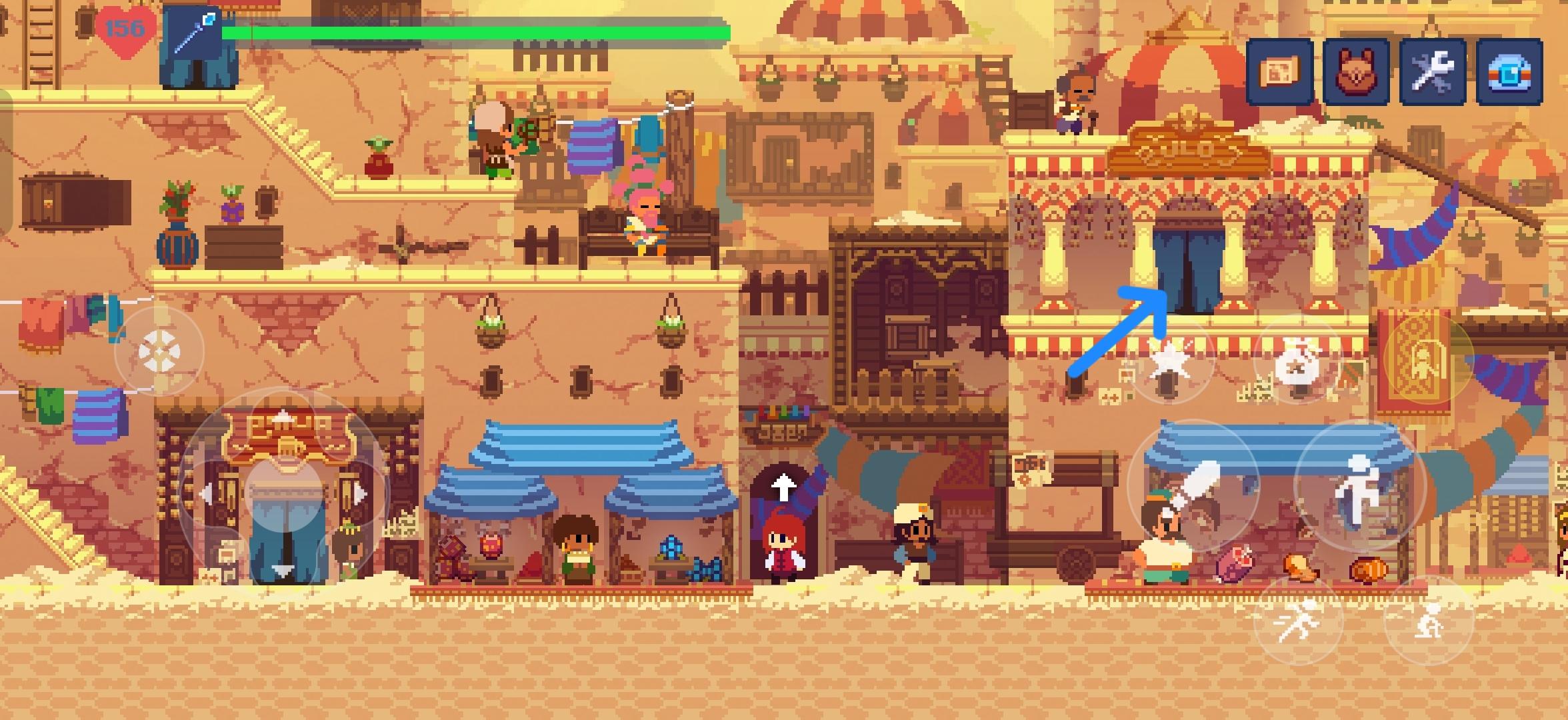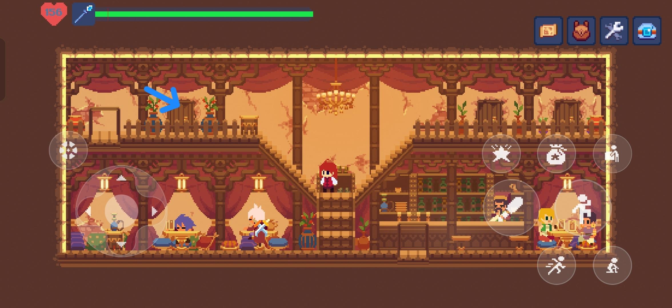 装备店往里走到尽头有被帘子半挡住的梯子,爬上来即可