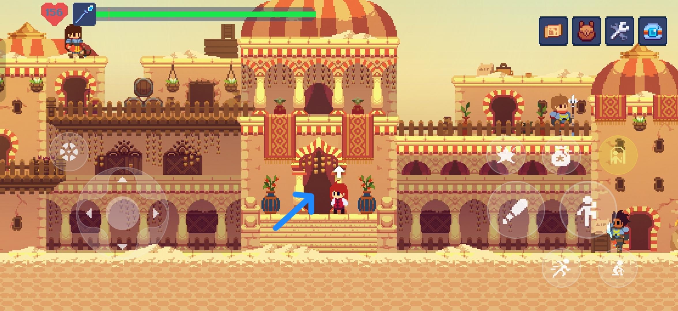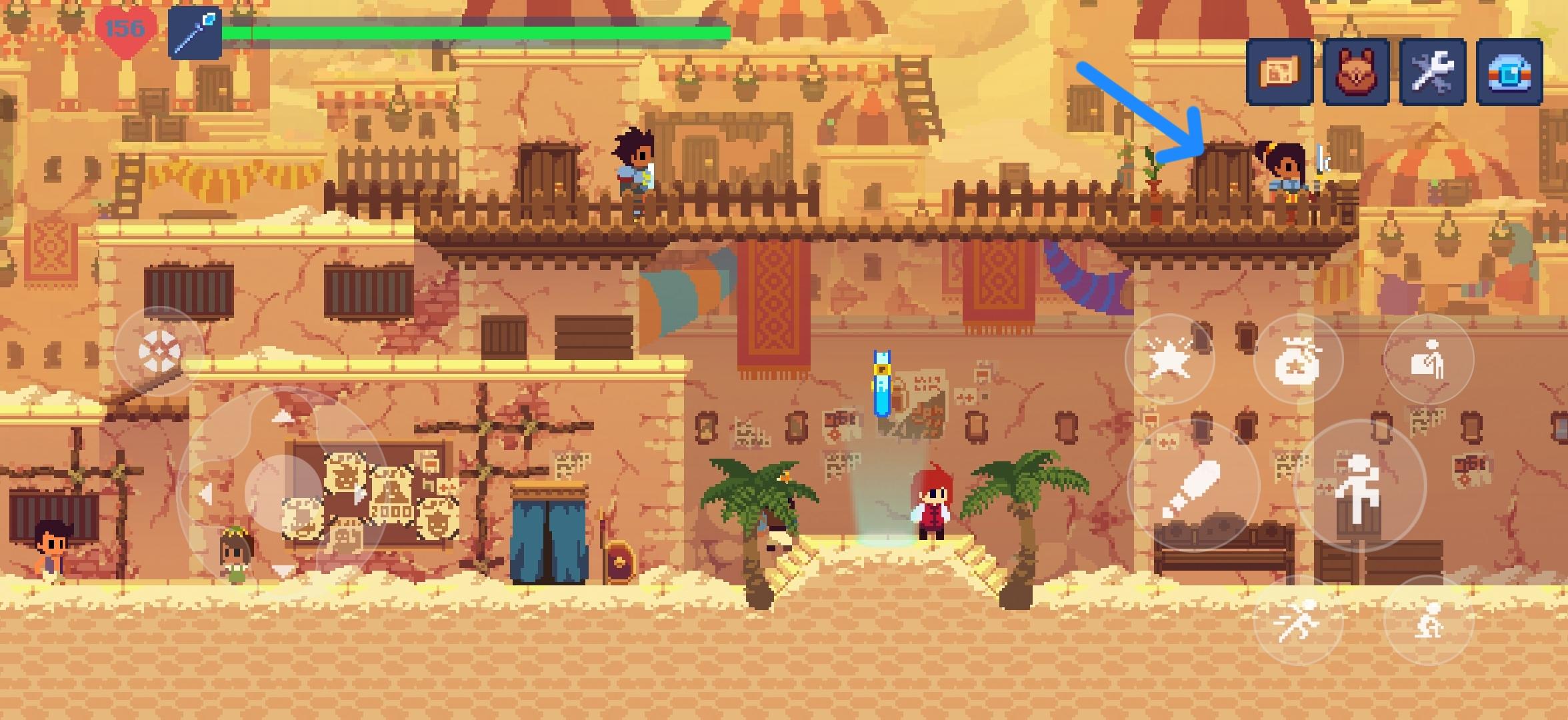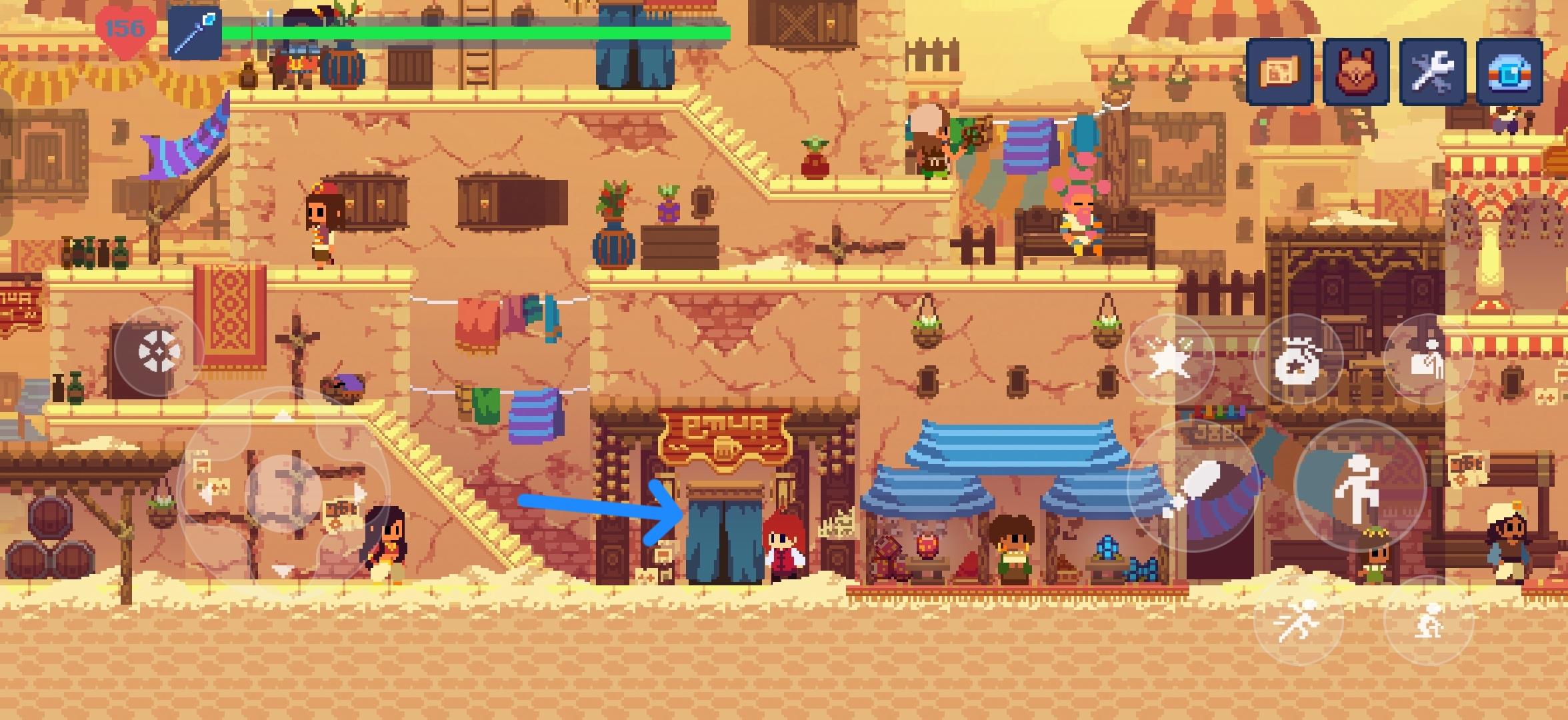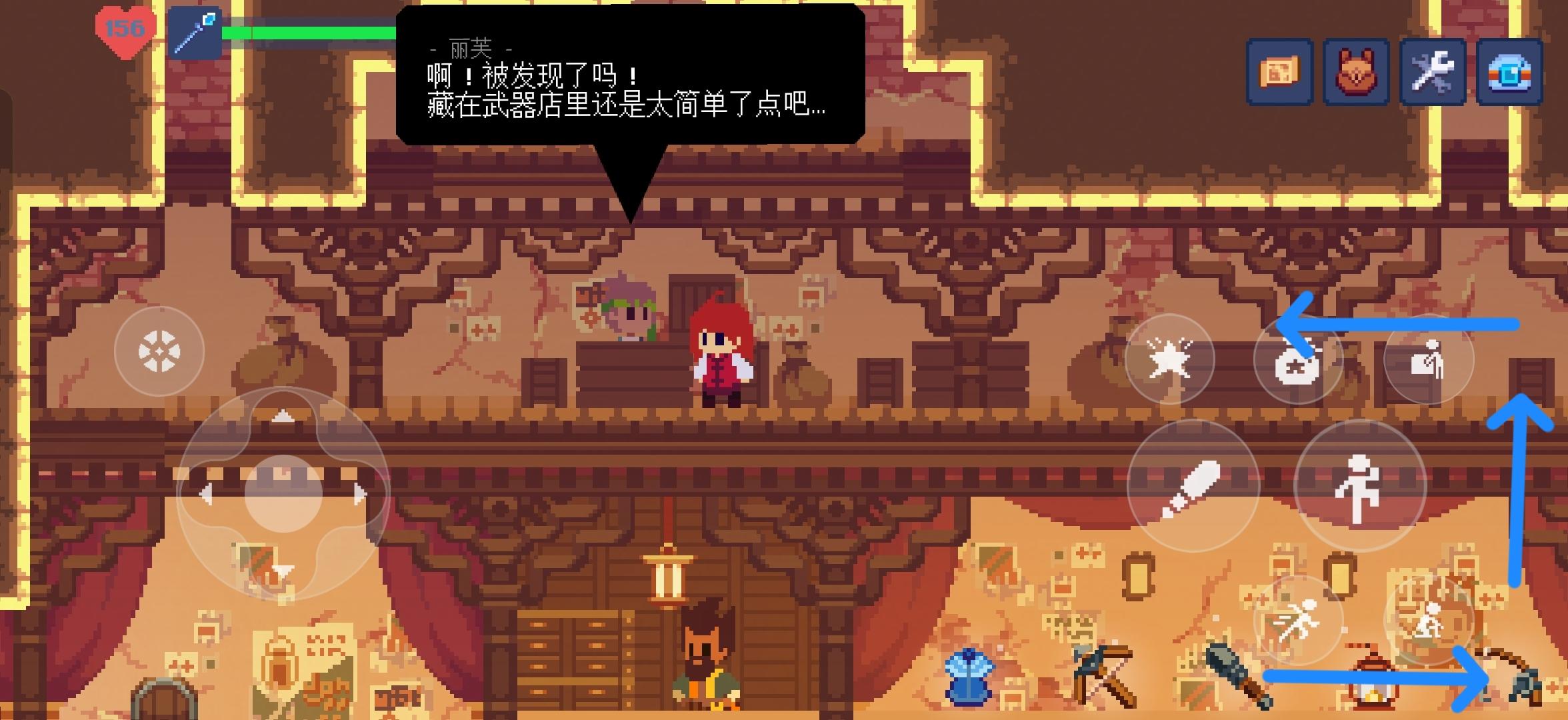 装备店往里走到尽头有被帘子半挡住的梯子,爬上来即可