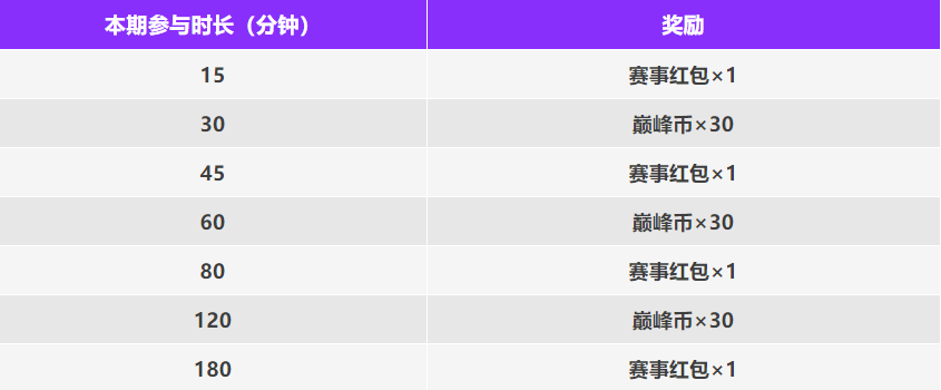 肠肠每周末参与比赛指定模式,累计参赛时长即可获得巅峰币和赛事红包,开启红包必得糖果奖励!肠肠记得及时领取哦~