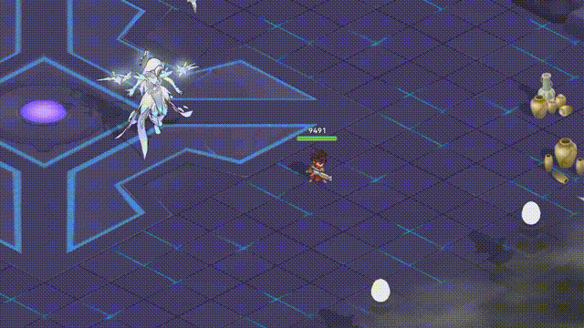 血量达到60%,20%时,会释放1次强化之力,霜晶巫女隐藏自己,同时将周围的地面变为冰霜领域,进入会造成高额伤害。同时释放冰霜冲击,被击中会被击退。