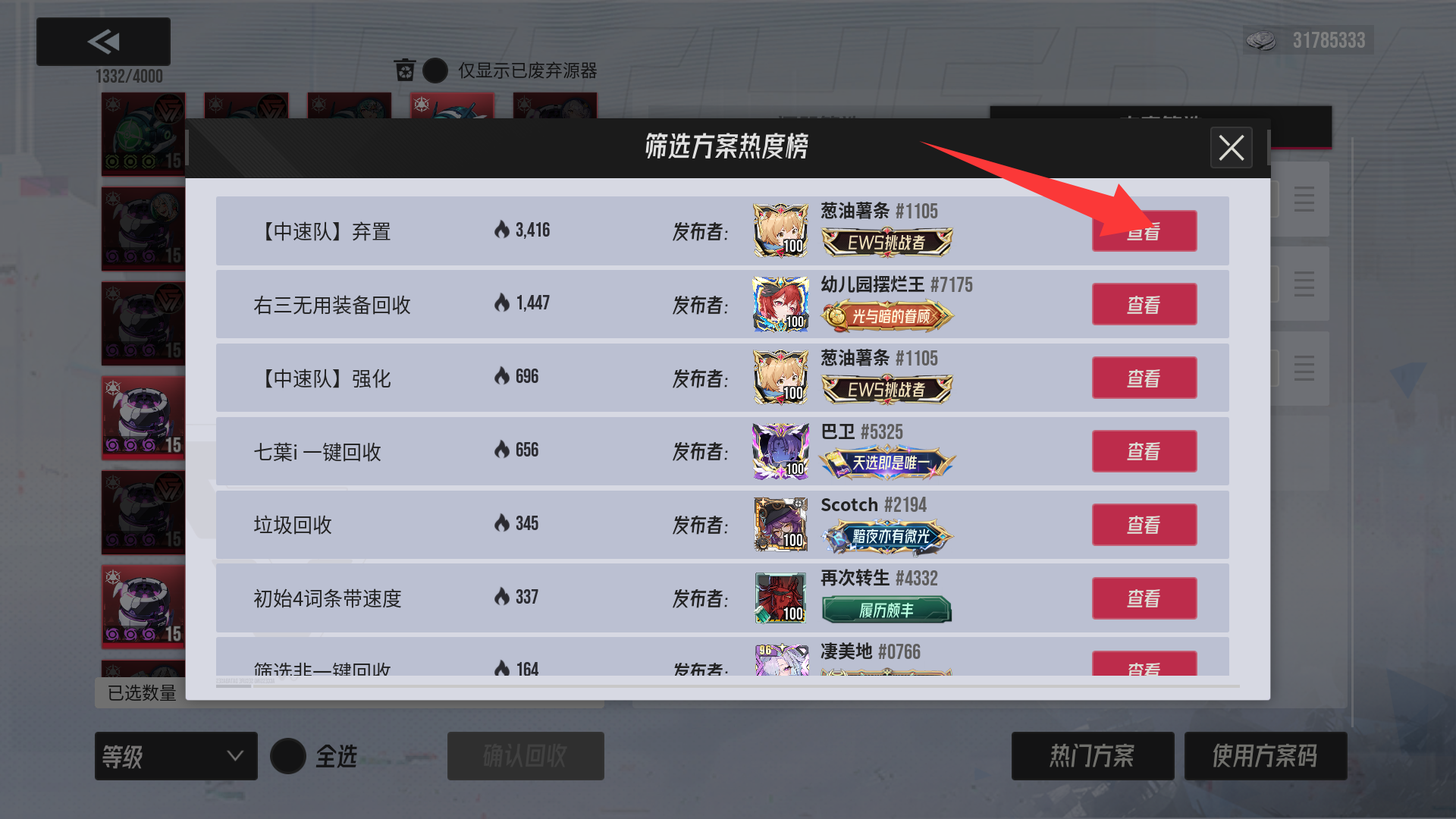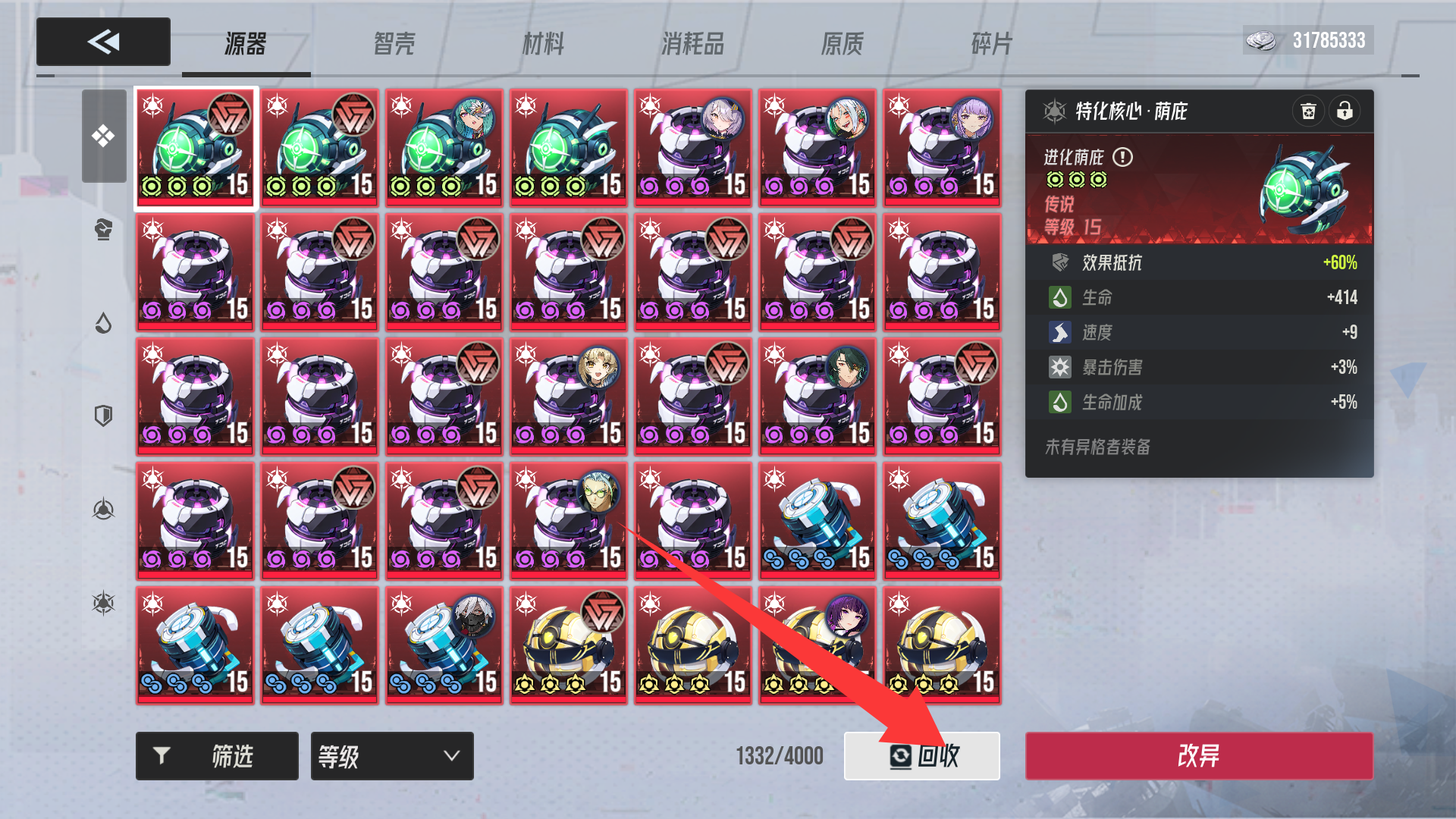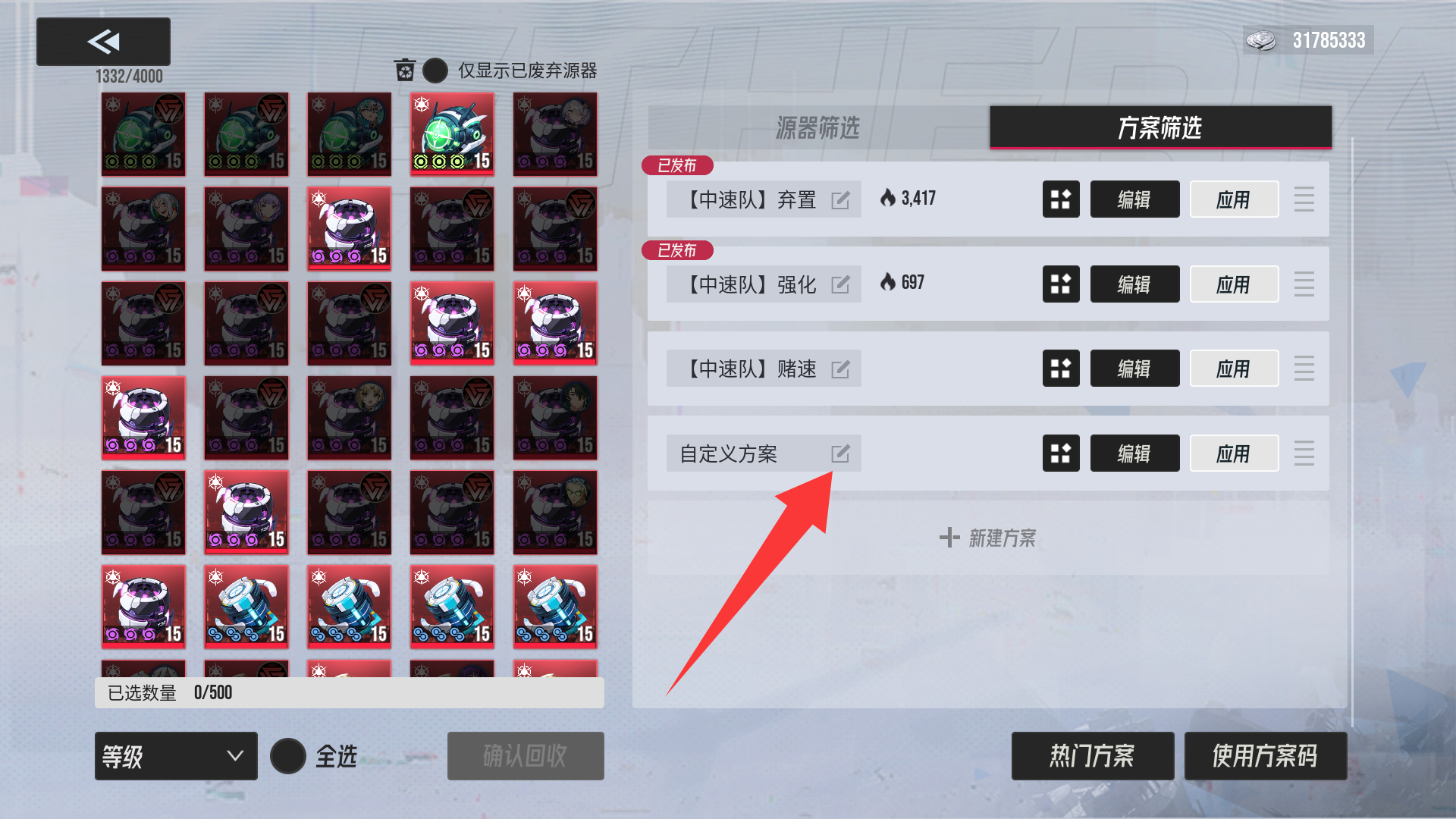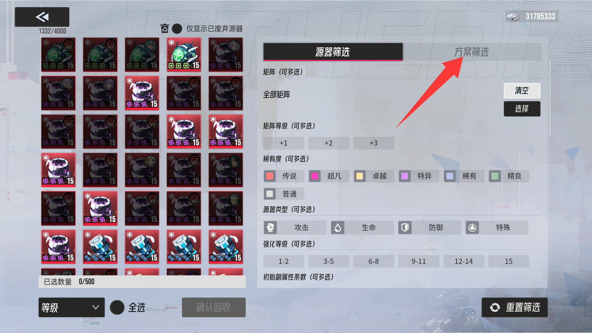 (弃置方案码为一键筛选需要回收的源器)