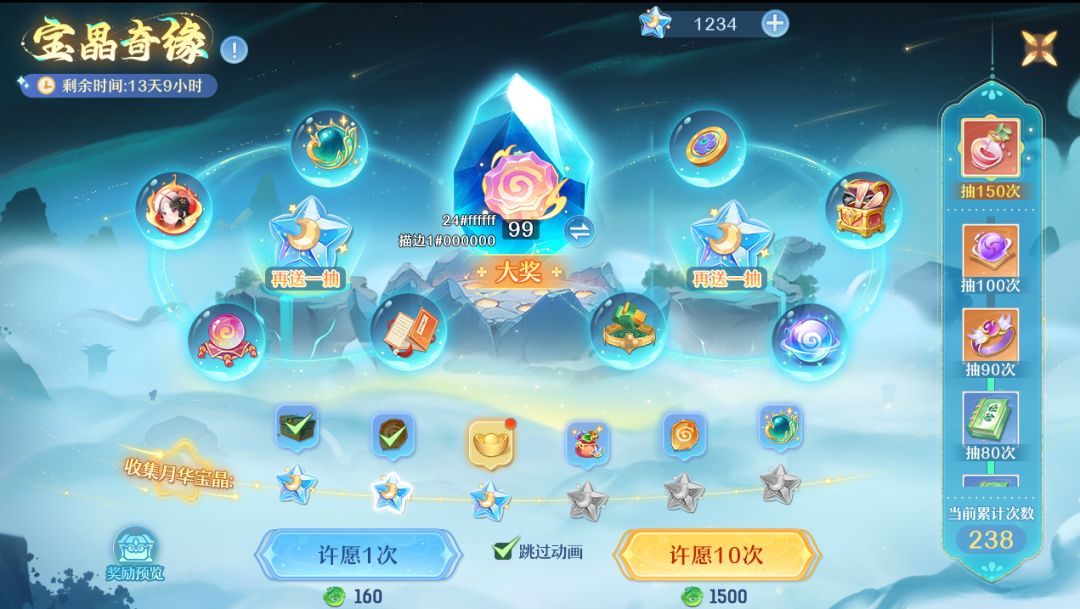本次史诗皮肤以时间之河为创作蓝本,颜色上选择了天水碧与远空蓝,配以少量鎏光金点缀。他周身环绕着若隐若现的水珠,那是时间之河溅起的微芒,每一颗都裹挟着一段溯游的过往;而万千未竟之愿,便在其法器深处,随之明灭闪烁。