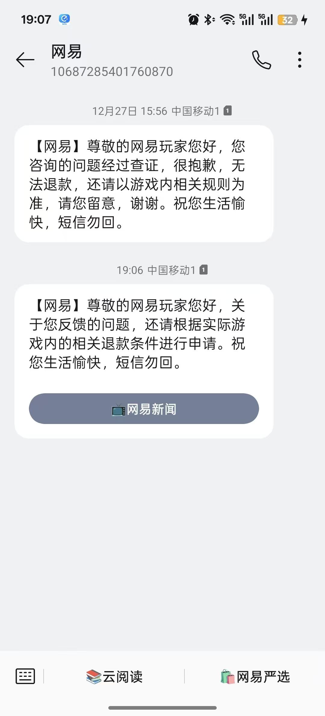 合着你们卖有问题的产品不用负责,玩家维权就是“恶意退款”?只保护开发者权益,把玩家的40块当智商税?客服打不通、退款被限制、投诉无门,这就是网易对待消费者的态度?