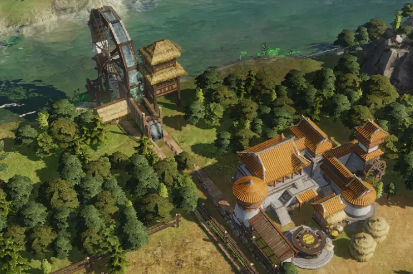在游戏中,龙骨水车布置在磨坊之后,源源不断的提供水源,为大军征战保证粮食补给,复刻了古代 “农兴则军强” 的生存逻辑。