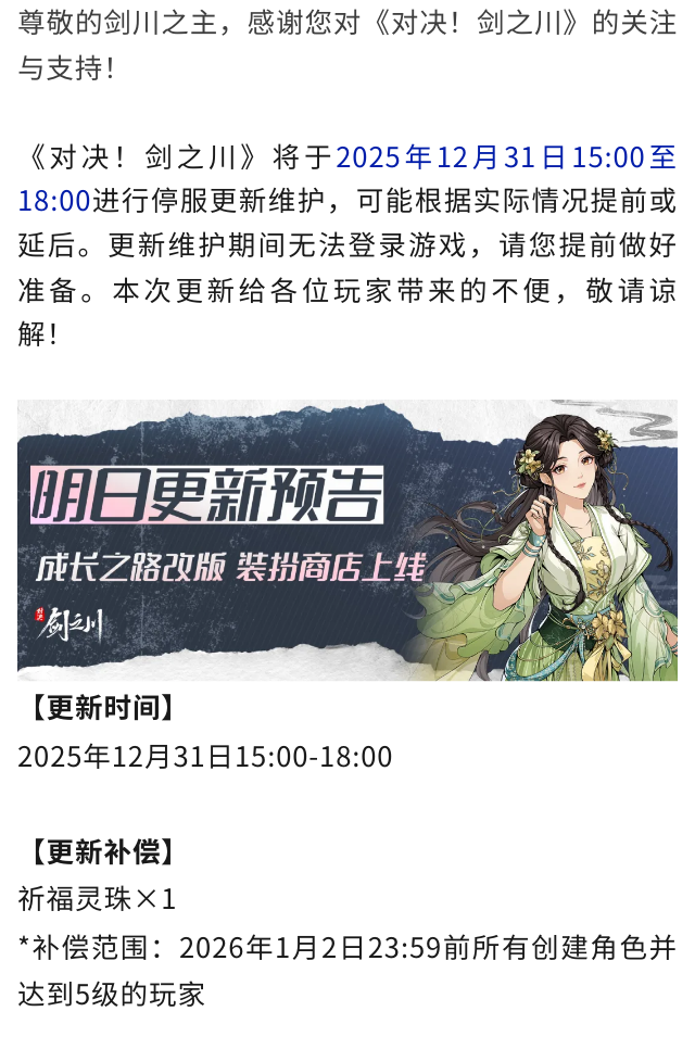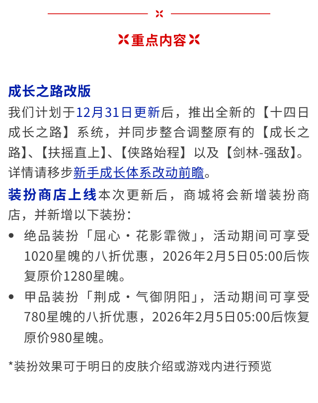 12月31日停服维护更新预告:成长之路改版,装扮商店上线!