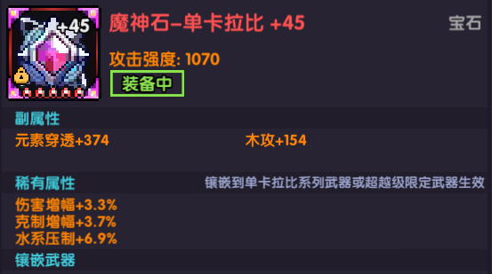 - 9*水系压制+9*伤害增幅+9*克制增幅最佳(技能未满级攻击强度换若干技能等级),如果缺毕业宝石,就保证水压+伤增(还没有就选择克制)有就行了。