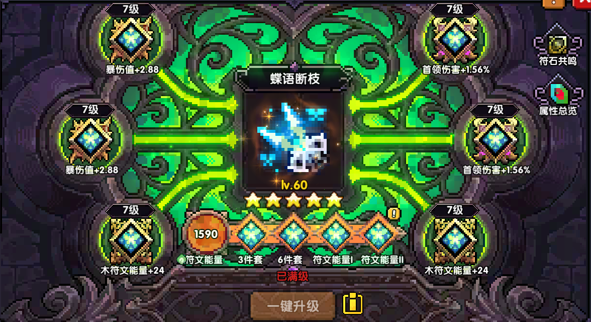 - 蝶语断枝:木攻+首领伤害+攻强