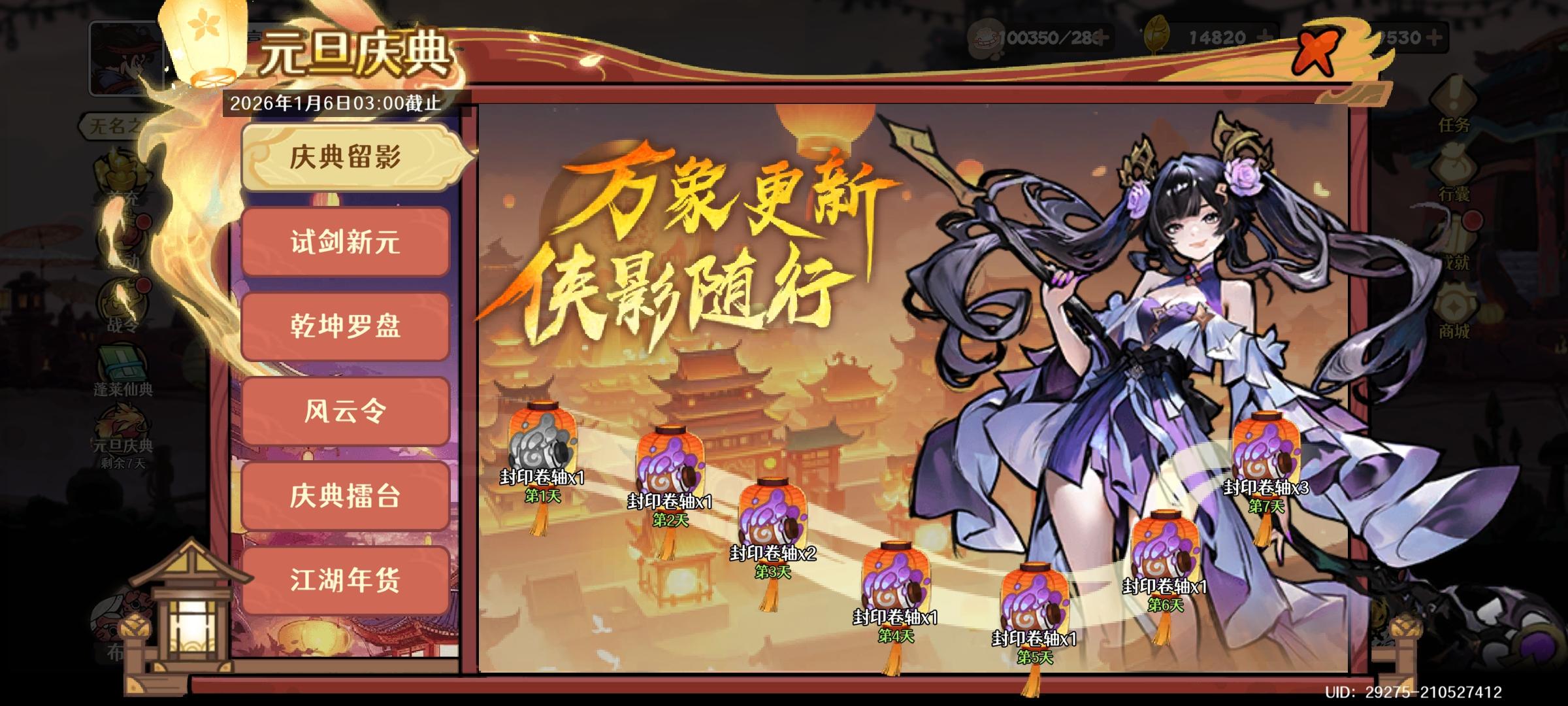 风云令和庆典擂台做满任务可以获得【乾坤币】*1900;