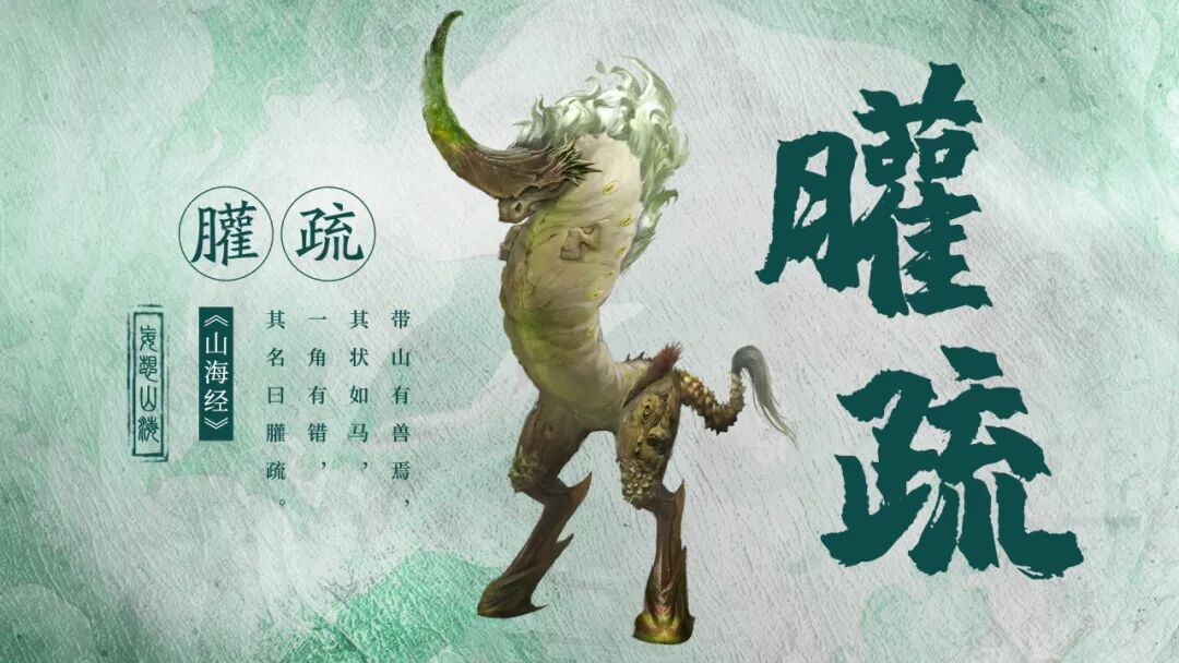 “一头形似骏马的生物静立于林中空地,其通体仿佛由一整块璞玉雕琢而成,最摄人心魄的,是它额前那支青翠独角。它有马的头颅却如同人一般直立行走,走近观察竟发现如玉的身体竟有蠕虫的纹路,透着诡异的气息。”