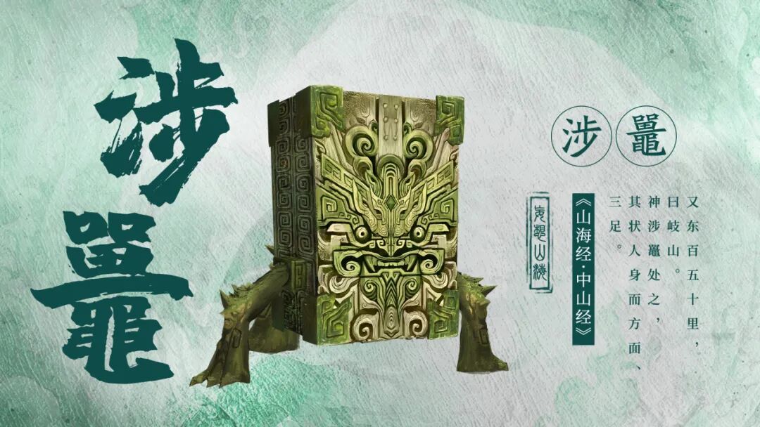 “初次目击时,先遣队一度将其误认为某种古代遗迹的石雕。其主体呈方正的石质结构,表面遍布着类似青铜器上的繁复回纹与兽面雕刻。然而,这“石雕”之下,却伸出三只粗壮有力的、覆满鳞甲的足,支撑着它在大地上行动。”“而进一步的勘探表明,涉鼍并非单一形态的物种。为适应北海多变的环境,其种群已出现显著分化,形成了多种战斗方式迥异的衍伸兵种。”