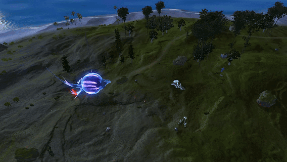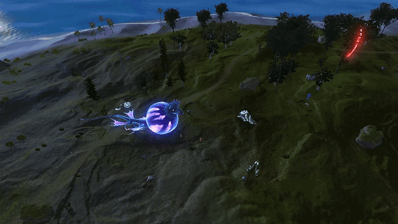 “其身躯并非寻常鸟类的流线型,反而呈现为一个巨大的、仿佛充盈着能量的球状气囊,表面布有赤色纹路,在蓄力时会进行剧烈膨胀。翅膀呈现出奇特的膜翼结构,显然是为了更好地驾驭气流。”