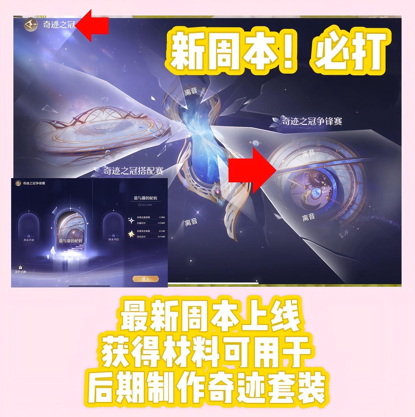 全新周本争锋赛上线每周都要记得按时打材料,会用于后续制作奇迹套装!