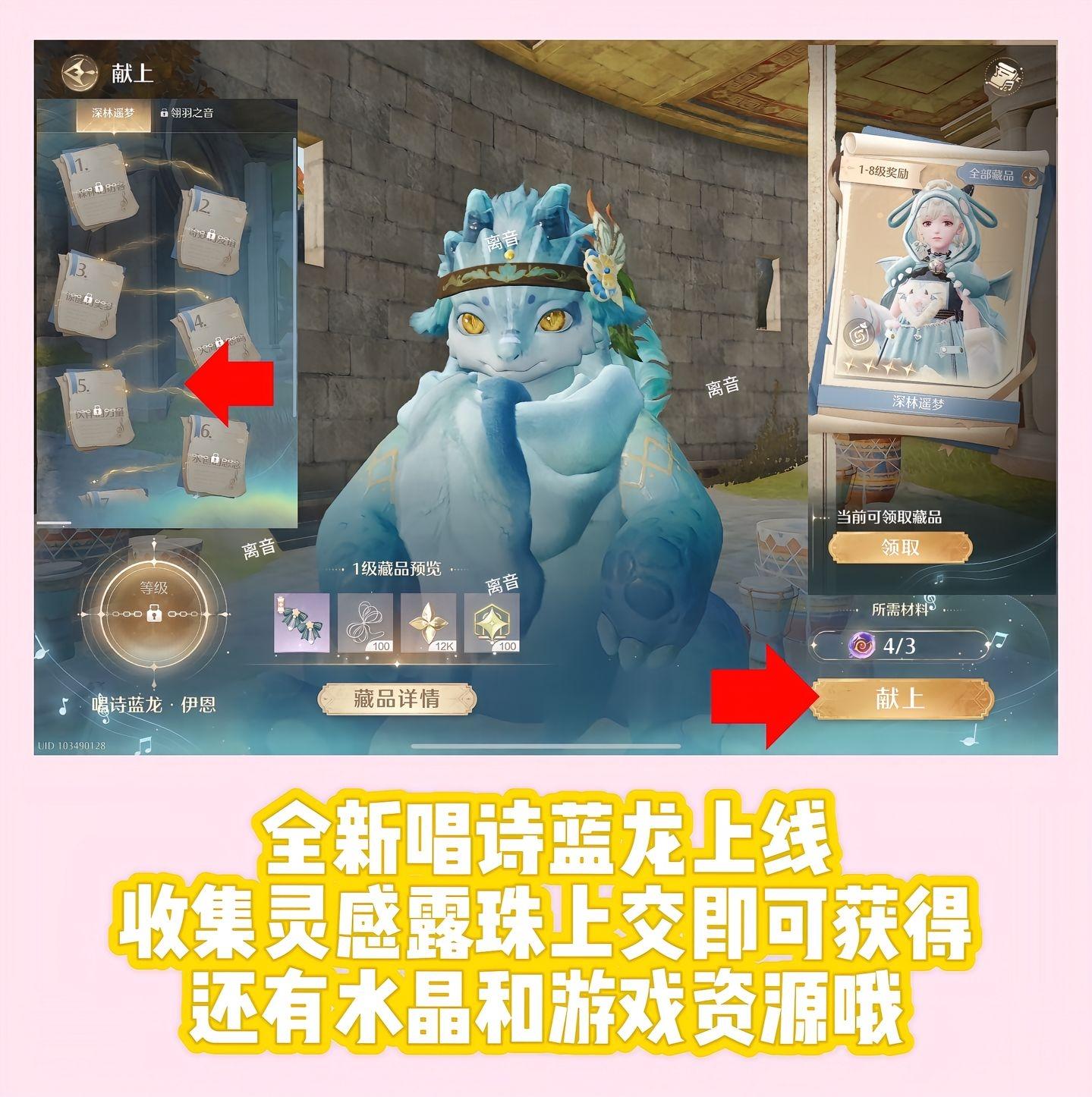 全新唱诗蓝龙套装上线,在新地图中获得的灵感露珠可去兑换两套新套装!