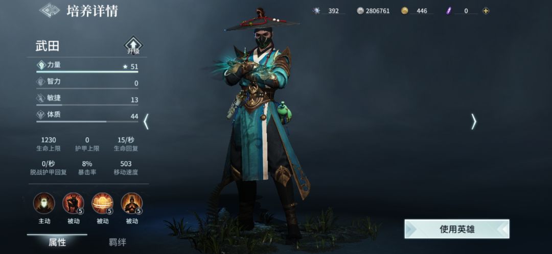 肉盾型武田:武器选项很多,镰戟或锤戟(进攻型)、盾镰或盾戟(保守型),镰刀、太刀、大锤、巨斧(自由组合),大招不开,被动升满(木兰+孙策或木兰+审判);衣服以力量装为主,宝石选红色正方形或绿色三角。