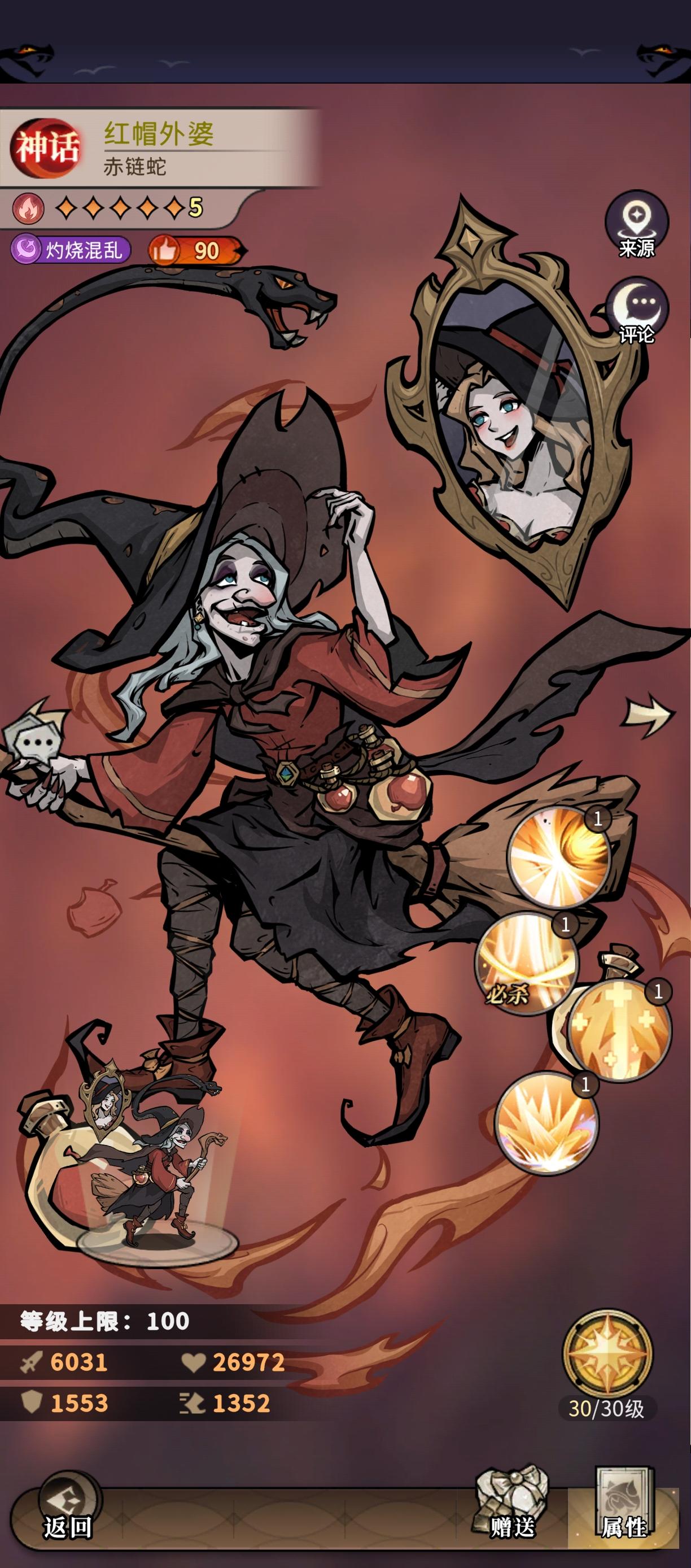 接下来是红帽外婆,是的,我们火毒阵容的红帽外婆,他的技能是优先打同一列最多的人,然后因为玩家的想法一般都是把奶或者主c放在前排后面,所以能够优先把我们的主c或者奶给切掉,导致输出不够或者奶量不够打不过,我们的应对方法是把两个能站得住的人放在一列,这样也是红帽外婆打不到别人,可以更好的通关,比如我们火毒阵容,把狼外婆和红心放在一列,就会很好的过关(下面附站位图)
