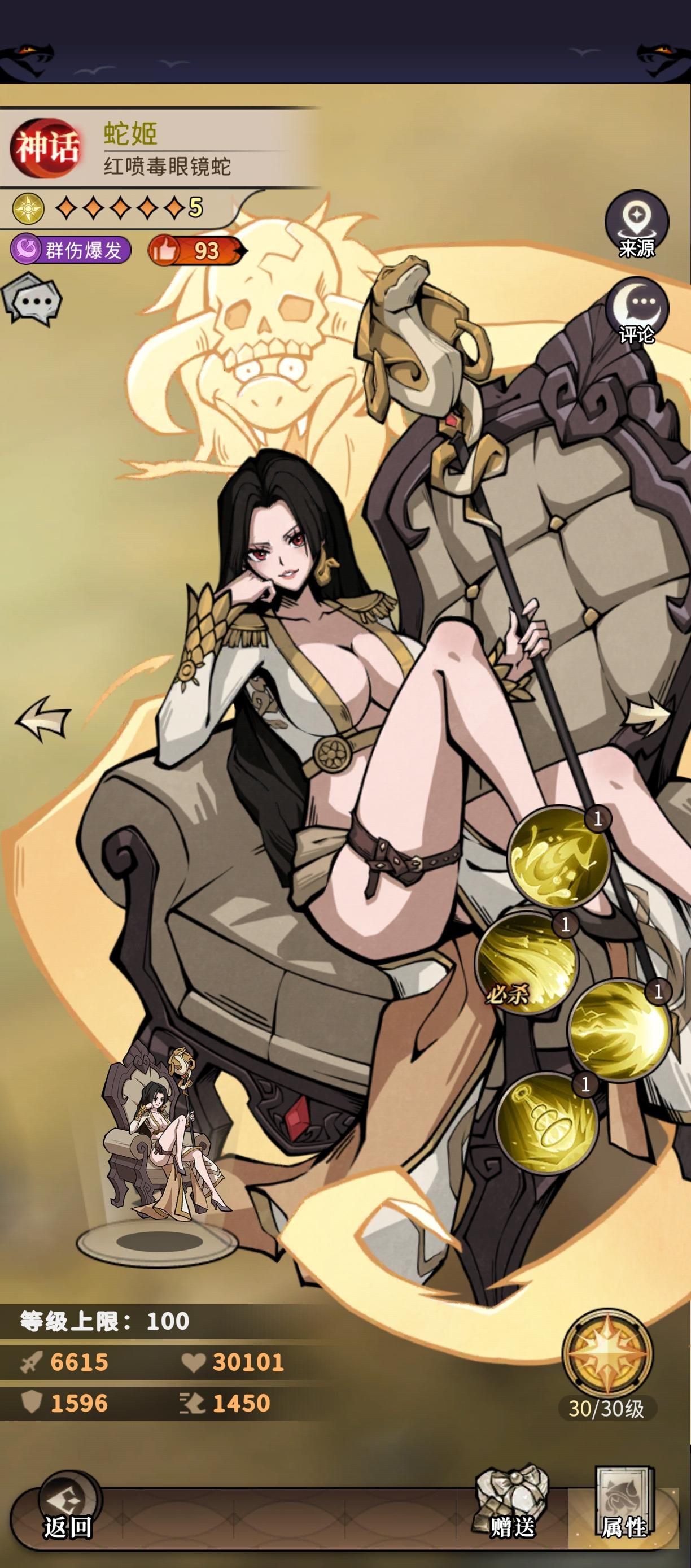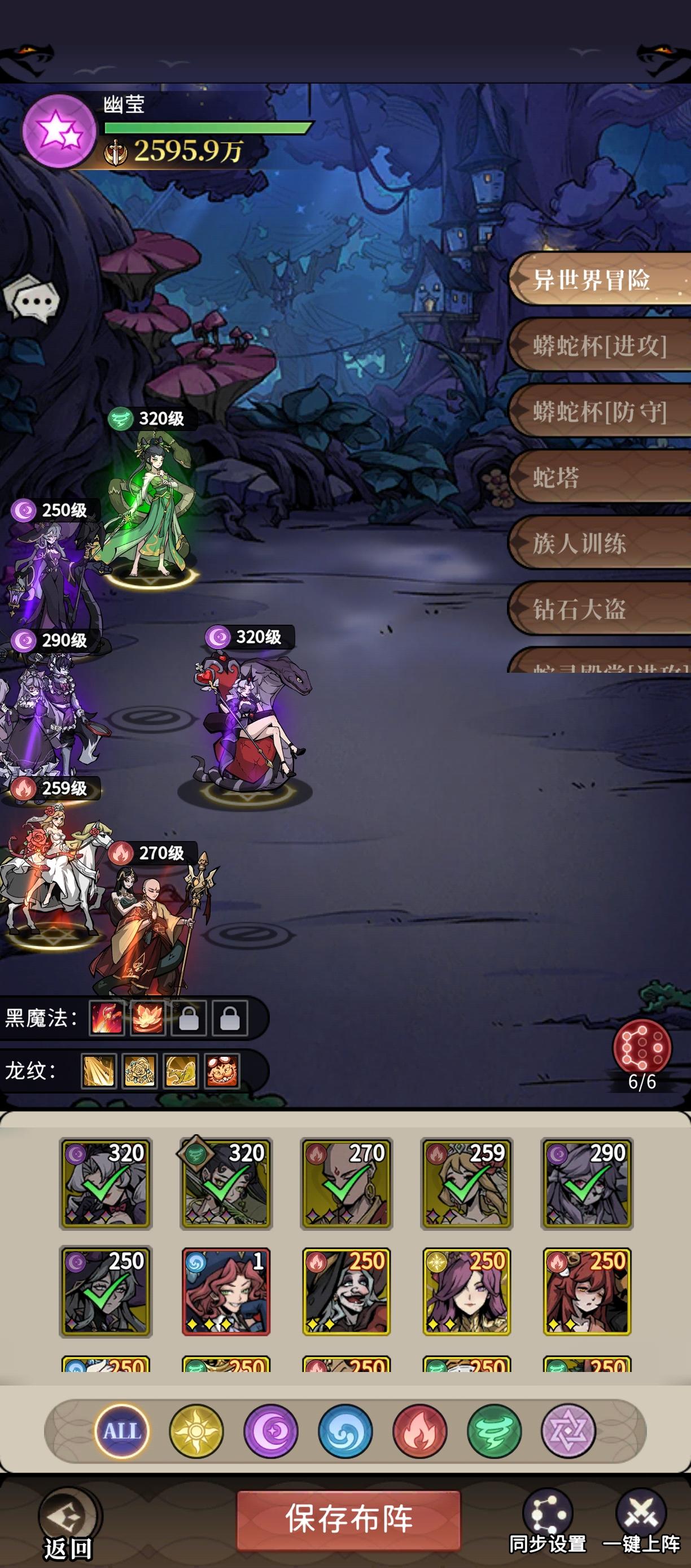 然后接下来的情况是蛇姬,他的技能是优先攻击中后排,一样的道理,会先把我们的c和辅助先切掉,导致我们只剩下前排,所以会卡着我们打不过,我们火毒阵容能够站得住的角色比较多,所以也是比较好打的,这里建议切换阵型为坚盾和把能站得住的放在中后排(下面附站位图)