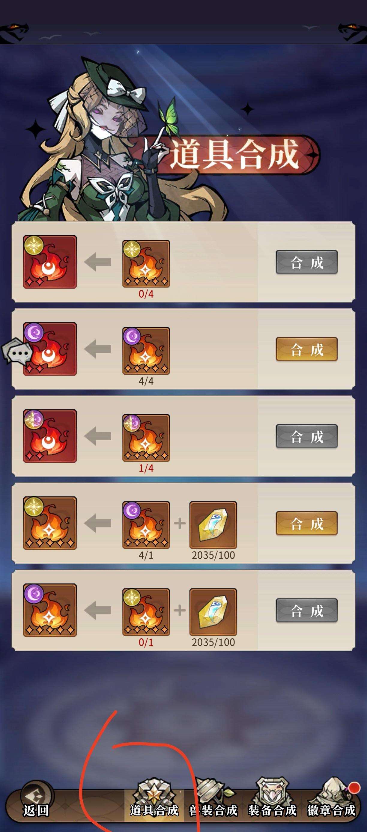 因为三个暗系嘛,肯定会比较缺暗系狗粮,之前没有在上个帖子里提出来过,这里补充一下,如果缺狗粮的话,因为咱们阵容没有用到光系嘛,所以可以全部把光系换成暗系狗粮,这里建议先把光系升星到12星,然后回退,会有五个光系狗粮,然后在蛇灵管家这里可以进行转换,缺暗系7星狗粮也可以在这里用4个暗5星狗粮合成暗7星(前期刚开服的几天不太建议合成7星,因为五星狗粮应该都也挺缺的),这个技巧对后面光或者暗单个狗粮多,主玩的系狗粮少的玩家也同样可以适用,下面附如何转换狗粮和一些自己尝试的重生需要消耗的重生药水图