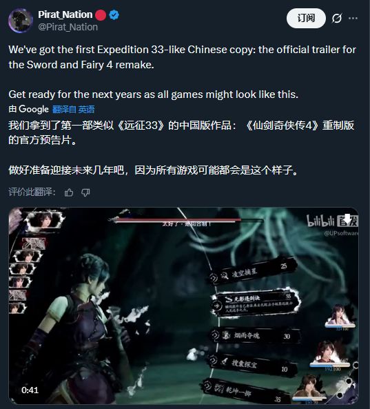 因为战斗画面与《光与影:33号远征队》相似,不少海外媒体都称呼其为“33-like”。