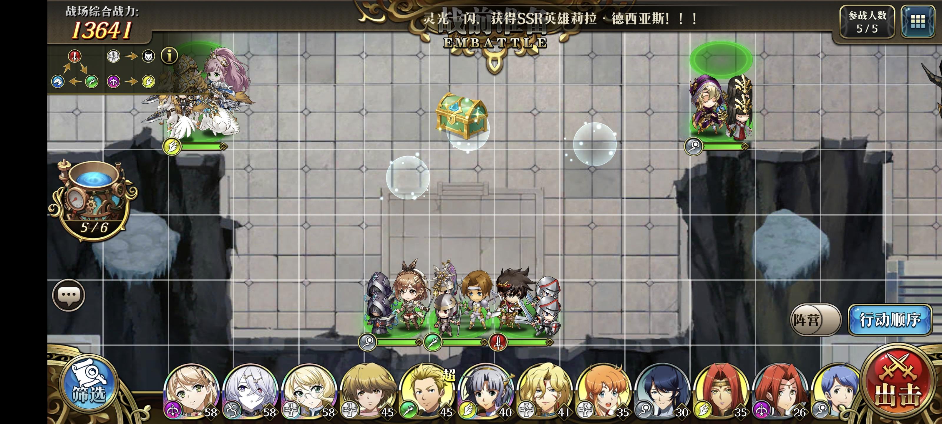 第二回合我方幽魂一定要走到下方飞兵能打到的位置(能不能打到人无所谓主要是为了引怪物的走位),召唤采集机器人,左右随便占一个然后往中间跑5就行,艾希恩这回合要往怪打不到的下方跑,跑不到就开再动来走位(很关键,因为要靠她的再动来后续给终极刷回合)