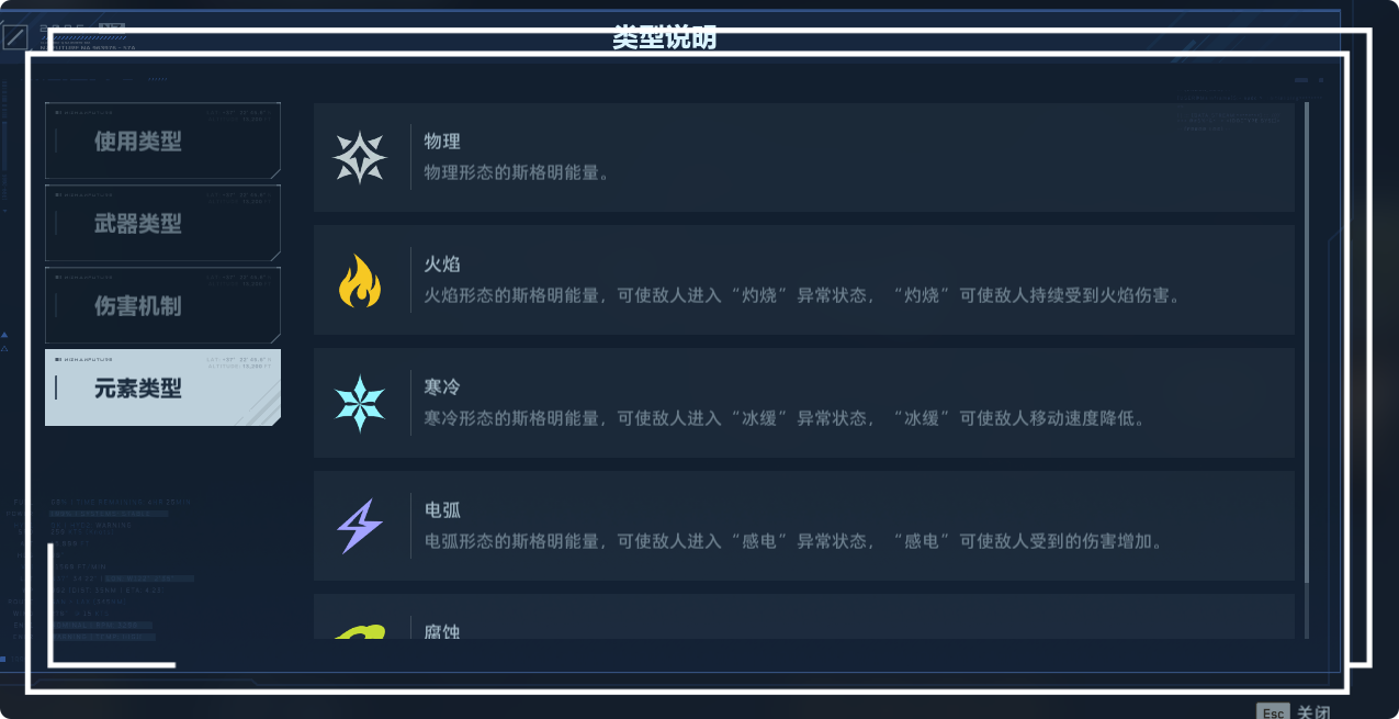 ·元素类型,所有元素类型能适配大多数环境,不用根据地图选择,萌新入门可以直接选择物理伤害。