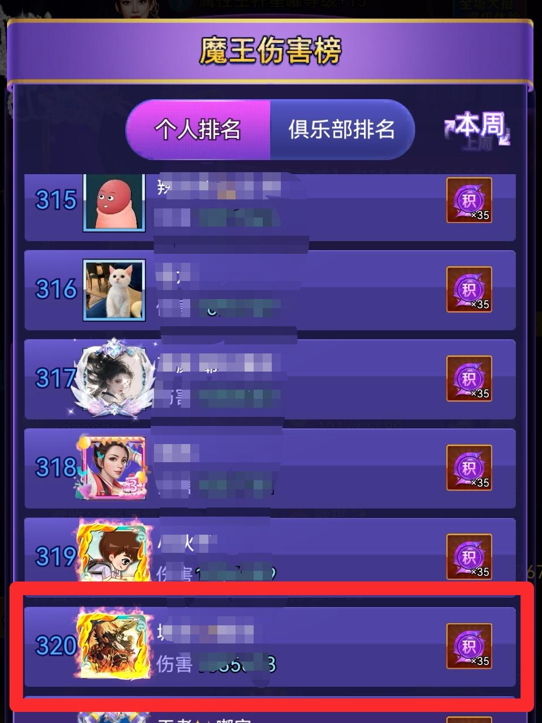 魔王伤害个人榜奖励扩充至前320名。