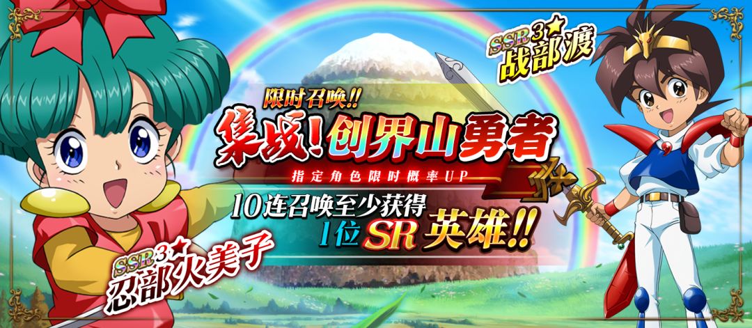 限时召唤「集战!创界山勇者」中SSR级英雄战部渡、忍部火美子出现概率提升!