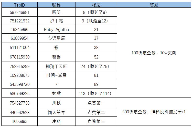 恭喜以下探险家们获奖,请获奖探险家在5个工作日内联系QQ:263599071,逾期视为自愿放弃奖励。以下为本次活动中奖名单: