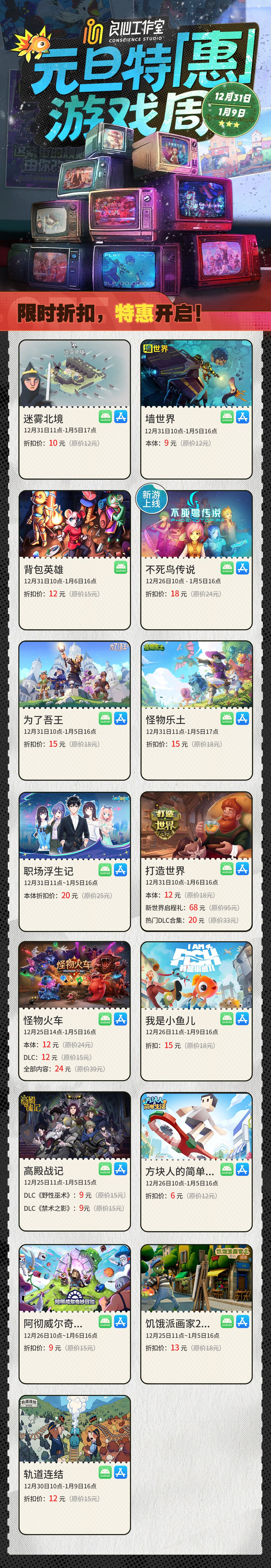 良心工作室元旦特惠游戏周来袭!——良心工作室旗下也有许多的游戏在打折,看看你有没有心仪的,赶快入手吧~
