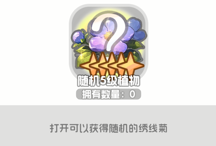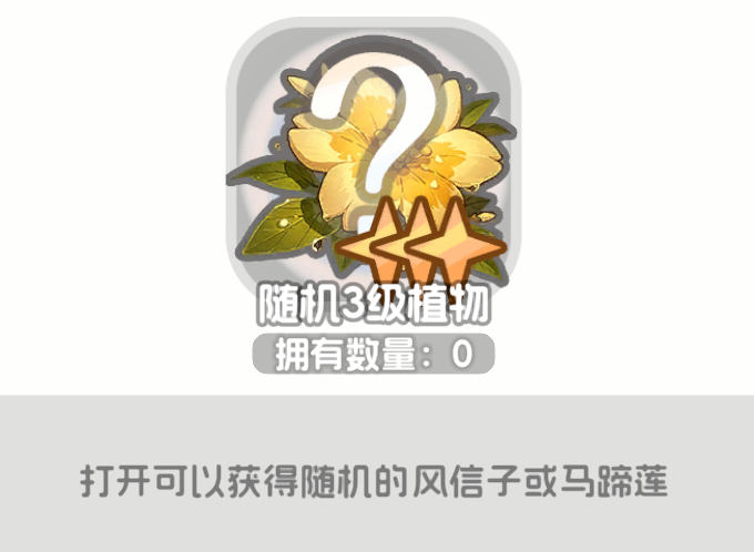 花一共有5个等级,9种花卉,我们需要攒齐9种花卉的3原色,红、蓝、绿之后进行繁殖,主线会送一部分花的颜色,但是不全 主要还是靠玩家自己在视觉层去蹭车获得随机奖励