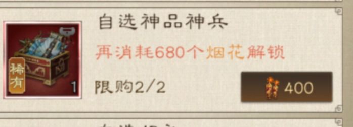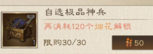 8.自选极品神兵:50烟花,性价比非常高!优先度在百炼钢之上