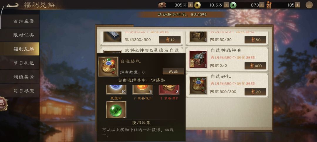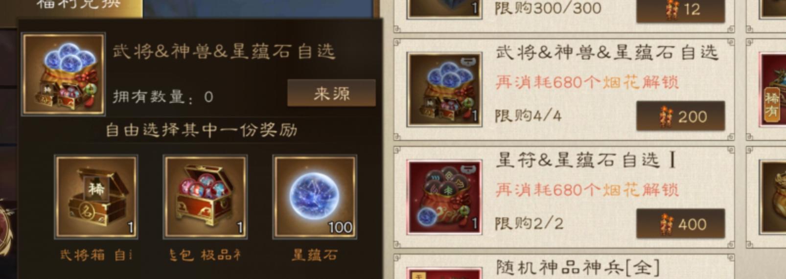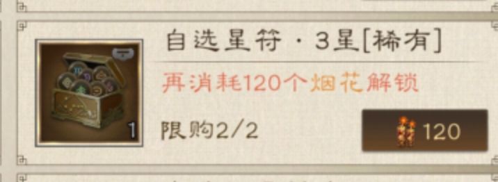 6.自选3级稀有星符:120烟花,限购两次次,必换