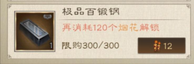 7.百炼钢:12烟花,限购300个!换不完,根本换不完…优先度可以在铜币之上