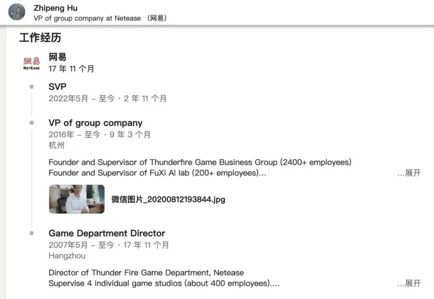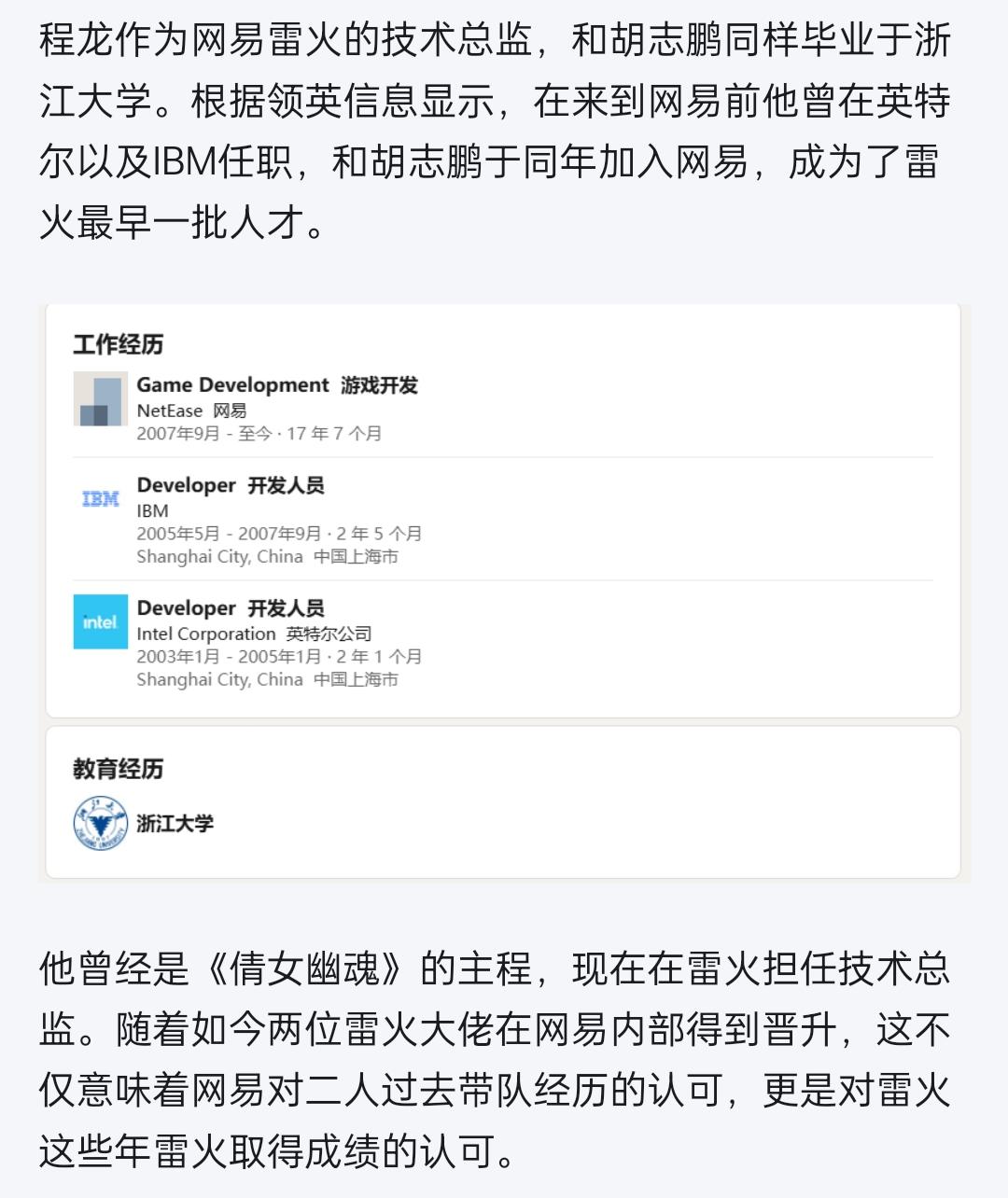 2025年3月31日,网易内部通告原高级副总裁、雷火事业群负责人胡志鹏晋升为集团执行副总裁(原为丁迎峰独有),原雷火CTO程龙晋升为高级副总裁。