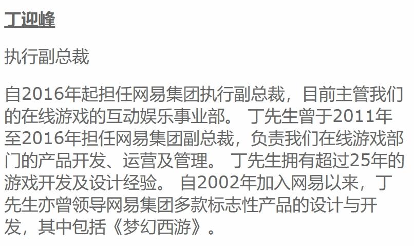 网易CEO丁磊在公告中高度肯定了丁迎峰的贡献,称其“在多款旗舰游戏研发中担当关键角色”,是“网易游戏研发与运营体系建设的核心人物”。