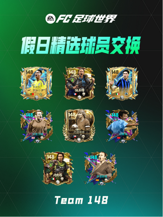 148假日精选球员交换上线,1月1日10:00-1月7日24:00,参与148假日精选球员交换,就有机会获得148赛季最佳终极C罗、148三国·群雄逐鹿佩蒂特、148英雄登场孙继海等热门148能力值球员卡。