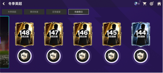 1月1日10:00-1月22日10:00,玩家可以前往冬季英超的欢度假日福利章节,参与球员置换、球员汰换。其中,球员置换分为144、145两个能力值、球员汰换分为146、147、148三个能力值,每项置换、汰换活动期间仅可参与一次。