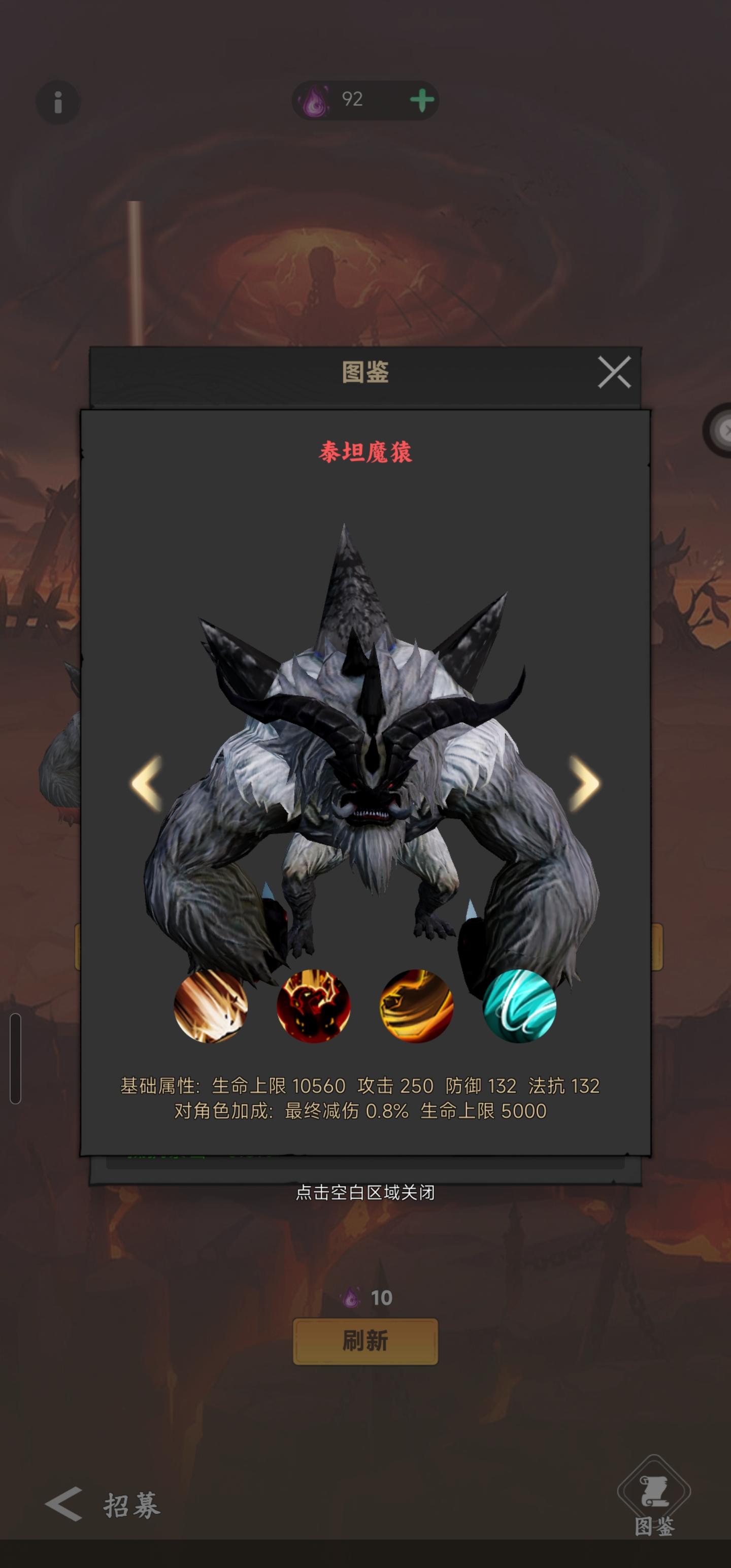 宠物分为:蓝,紫,金,红。宠物的获取是通过关卡任务产出的精魄换取,红色宠物1000个精魄换一个,宠物是招募刷新的,每次抽取消耗10个精魄,宠物有分战士属性和法师属性的,可以看宠物的技能伤害是哪个,天赋加点不要加错,技能是攻击力伤害的就优先加攻击力。如果是法效的就加法效的。宠物目前比较推荐泰坦,不死鸟,鱼头怪,这三个红宠。泰坦有4个技能,其他的就3个,后期如果更新改进,感觉选泰坦应该不会后悔。