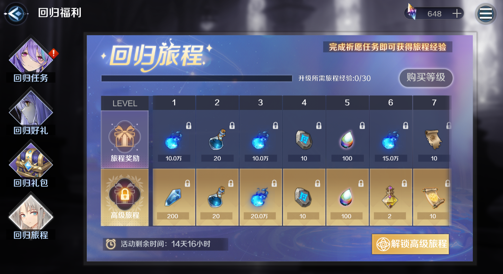 ③ 回归礼包:开启回归启程礼包。