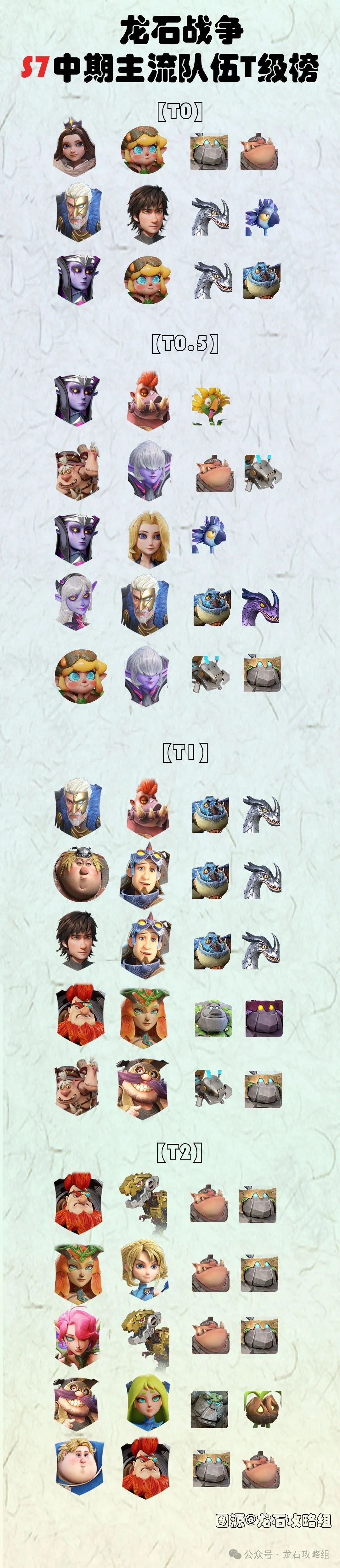 【龙石战争】S7中期主流队伍T级榜