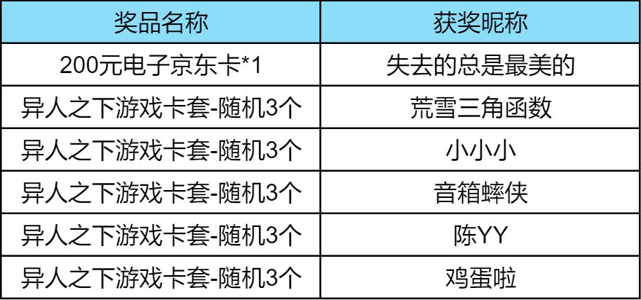 亲爱的玩家们,本次活动已经圆满结束啦,感谢大家的热情参与~现在就为大家公布本次活动的获奖名单~