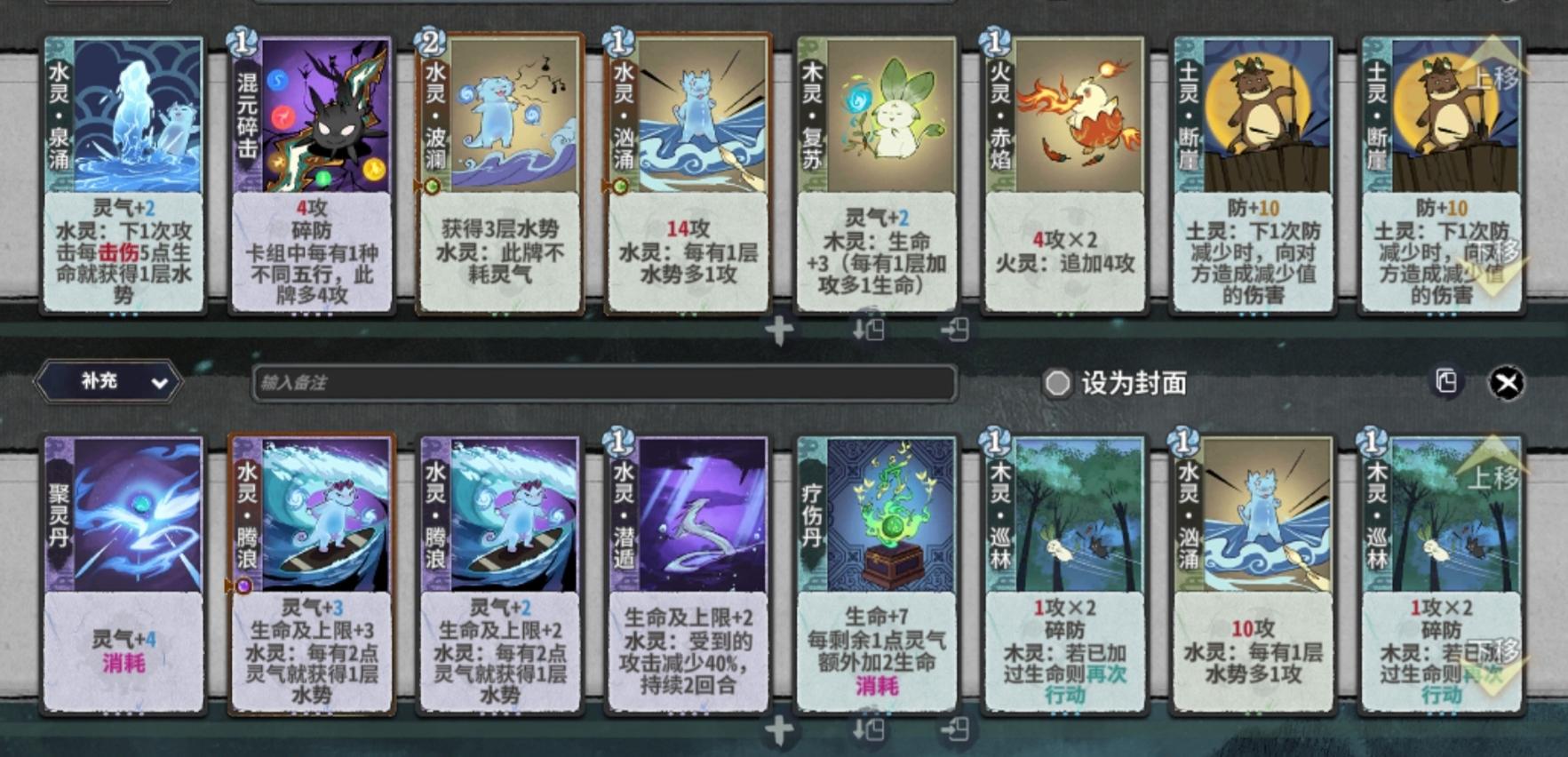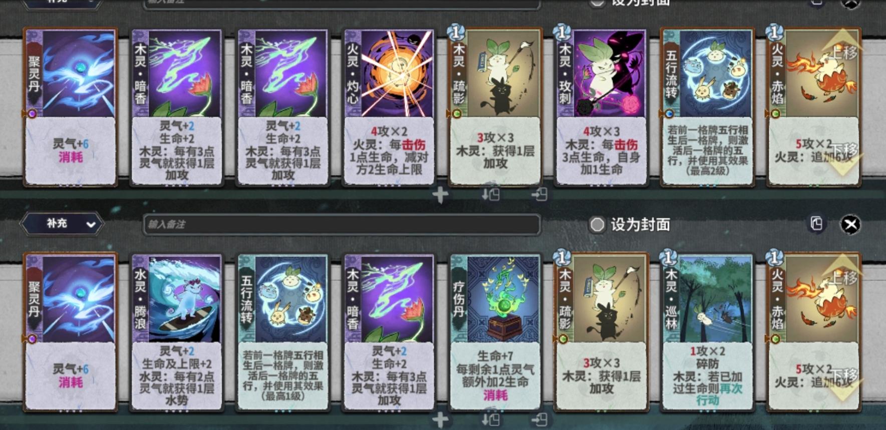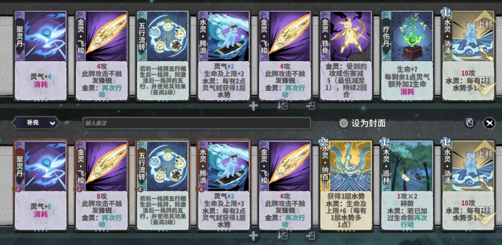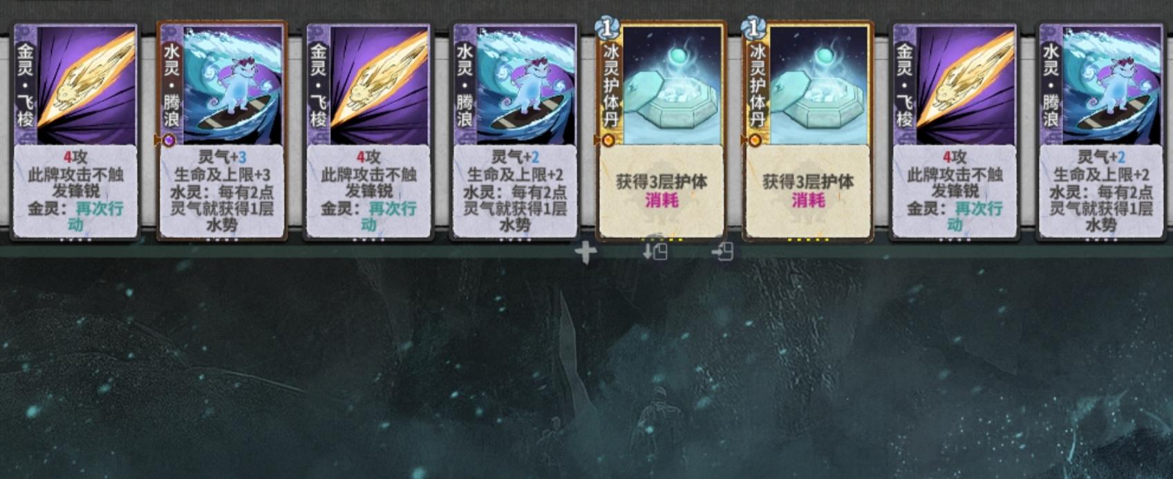 ③.金水。聚灵丹起手,然后飞梭流转腾浪,后面根据情况摆牌。这套虽然弱,但即便是化神也有一战之力,吃到烂分。毕竟可以靠护体丹护体刻印忘忧打崩拳、剑意、剑阵。二动铁骨可以打小成百杀云剑狂剑木火。