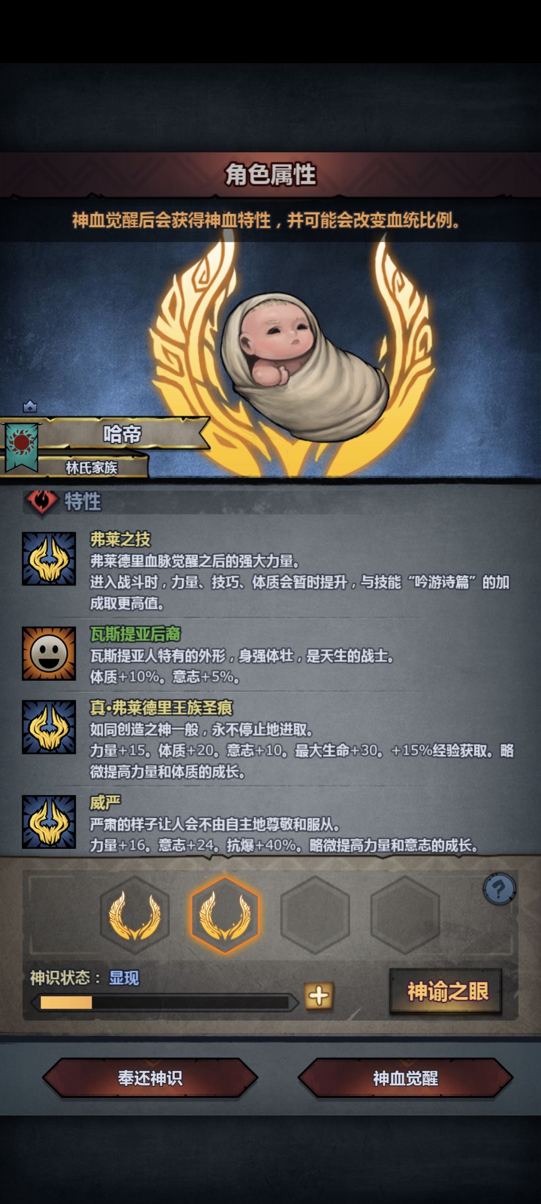 接着就是牛头第一个神子转复活天启(摇到了威严+真圣)。