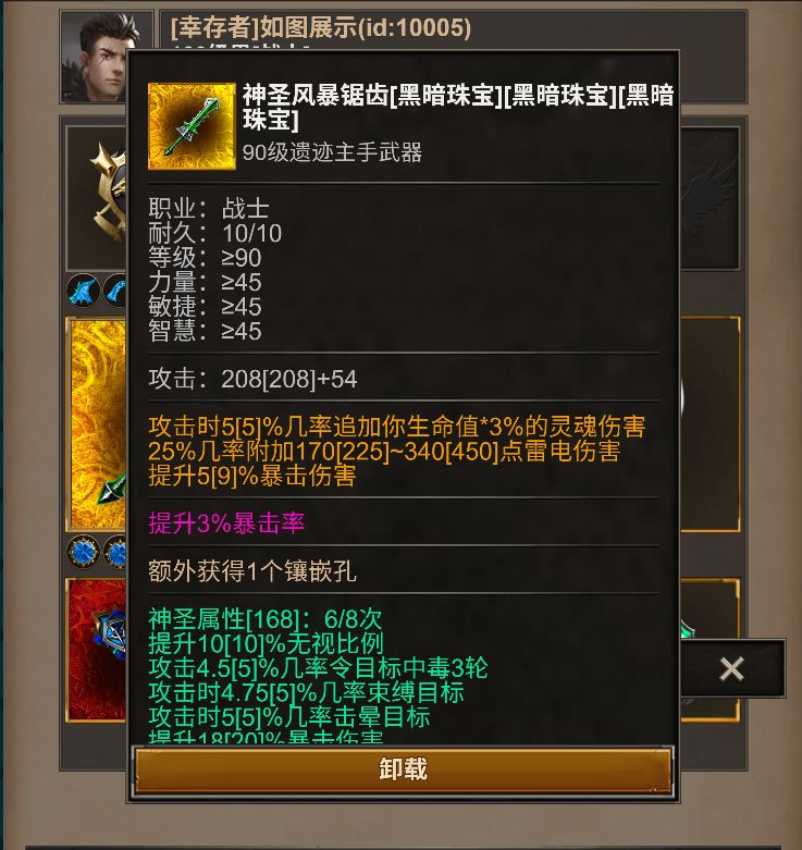 论坛上传游戏图片——角色装备界面,显示已装备带特殊属性的装备,并留言新年愿望