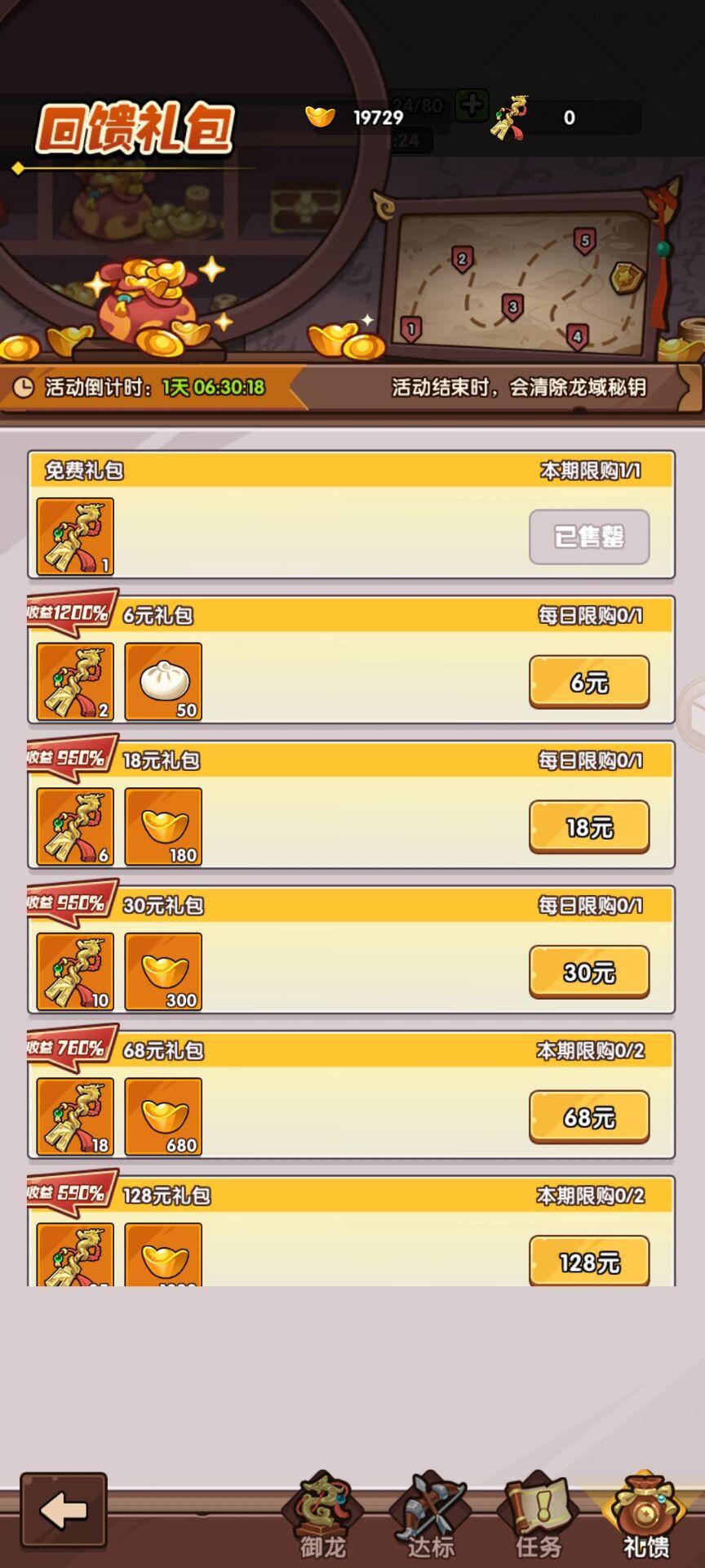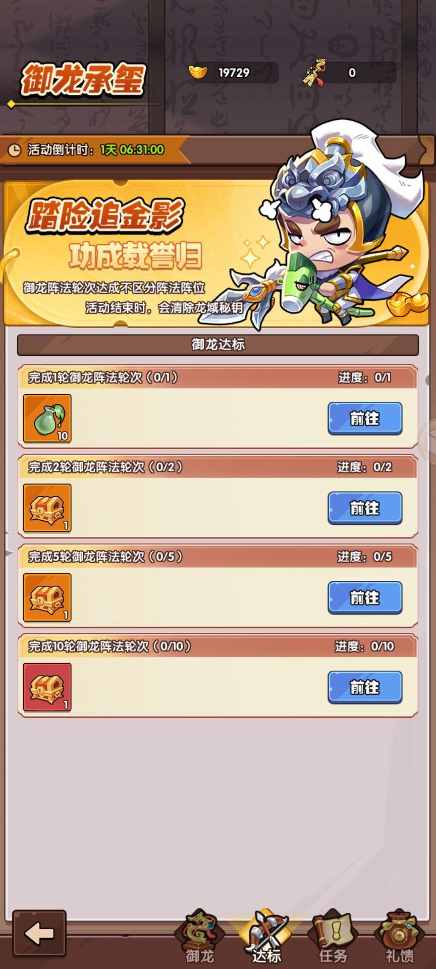 6-7天:御龙承玺,个人觉得微小氪玩家可以忽略的活动,需要专门的钥匙道具,跟史诗钥匙差不多,非大氪土豪玩家不建议参与,把任务做完,免费的抽了就行(大概13把)。